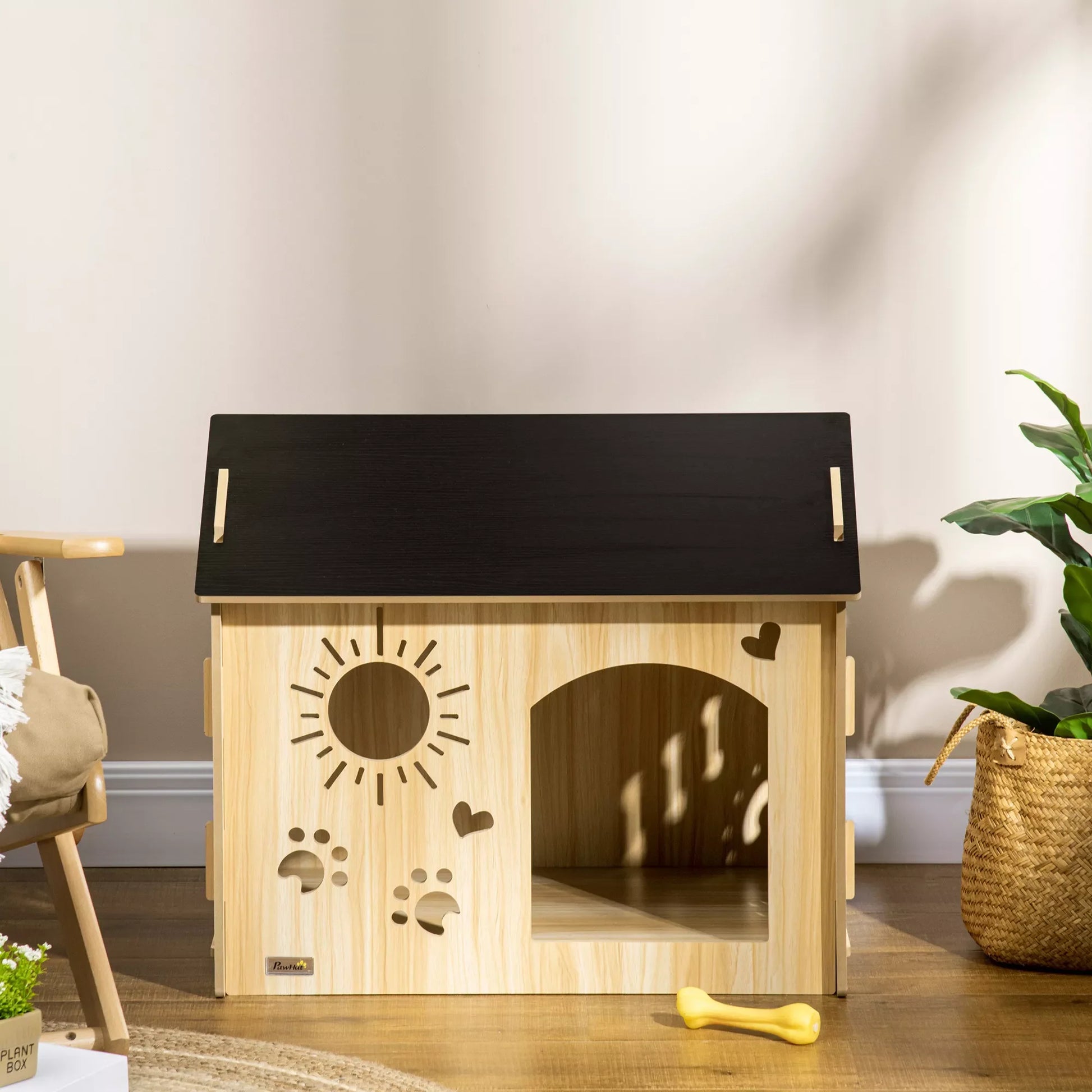 Šunų namelis, su ventiliacijos angomis, atsparus oro sąlygoms, medienos medžiaga, juoda+medžio spalva, 69 x 50 x 58,5 cm