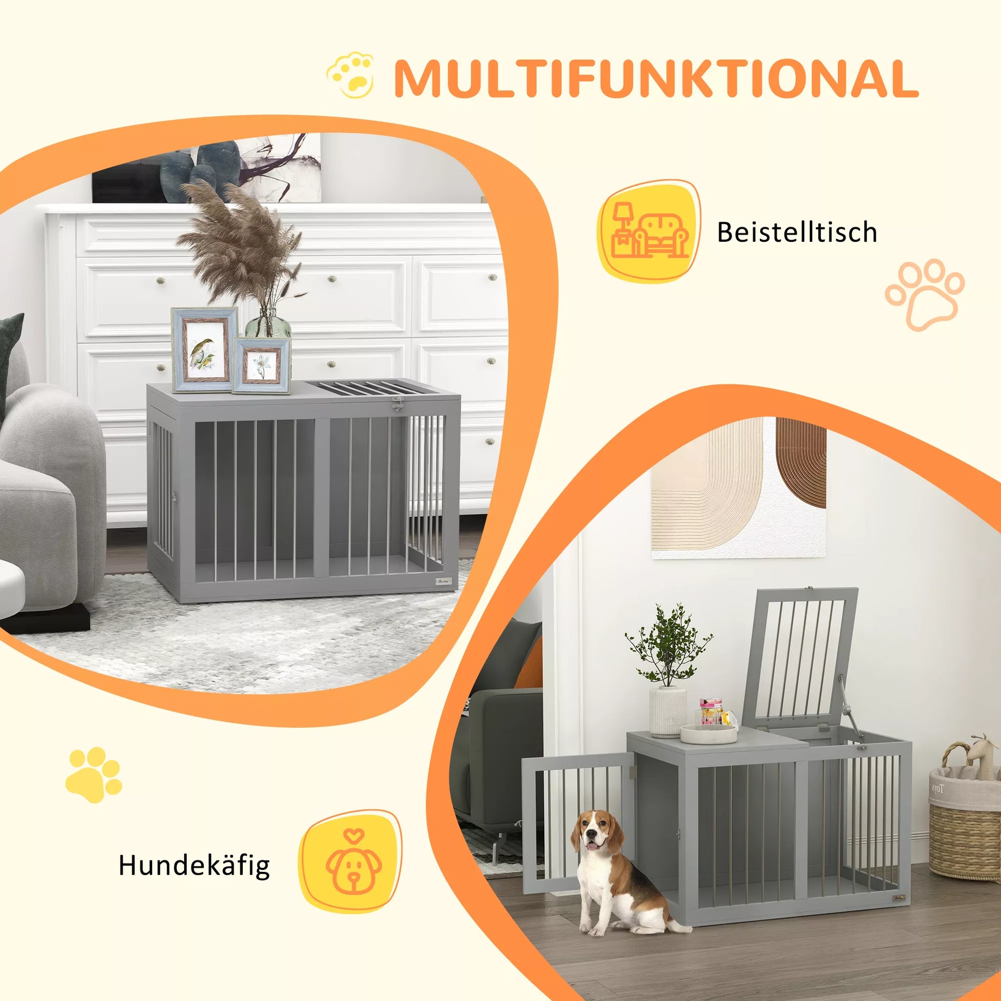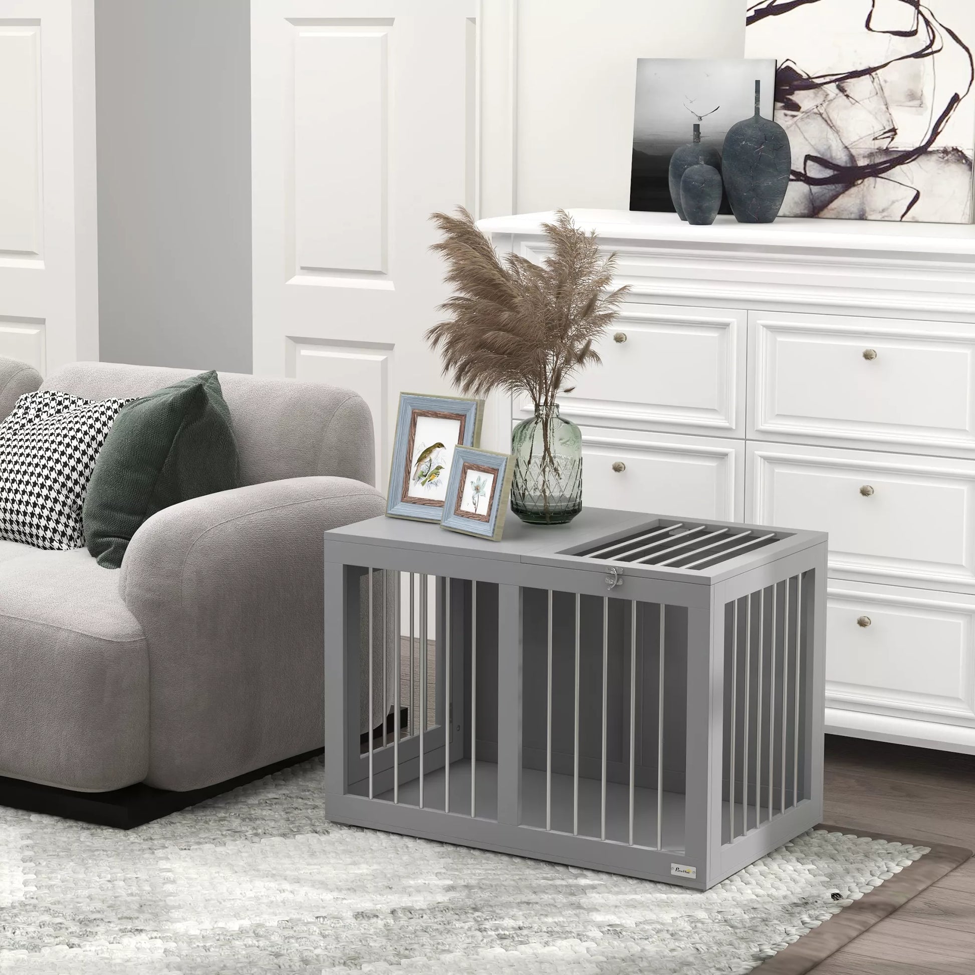 Ši moderni „PawHut“ šunų dėžė suteikia jūsų šuniui saugią ir apsaugotą poilsio vietą. Pagaminta iš plieno ir MDF, ši šunų būda tinka vidutinio dydžio šunims. Viršutinės ir šoninės durys yra užrakinamos ir gali būti naudojamos trumpalaikei augintinio priežiūrai. Modernus dizainas dera prie įvairių interjero stilių.