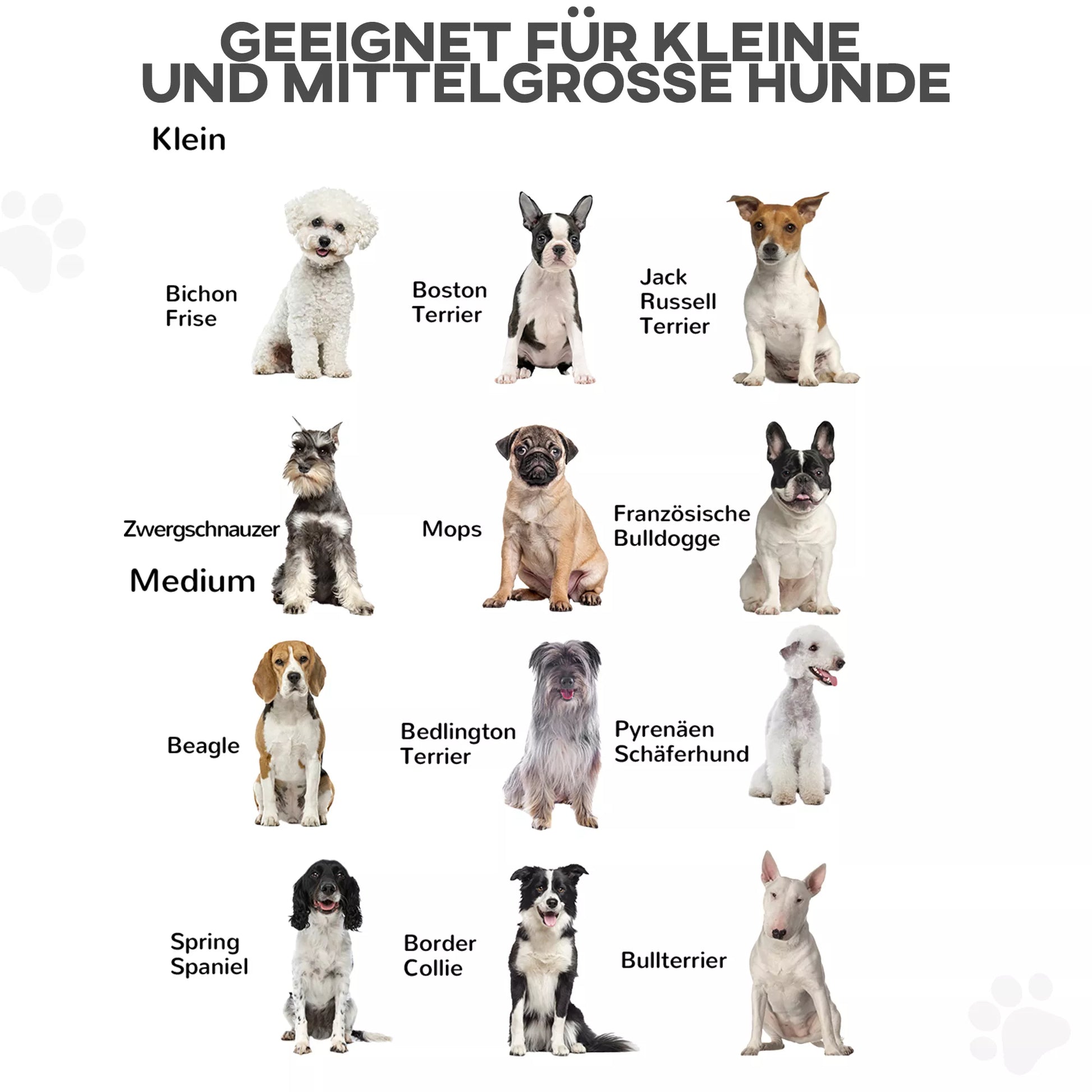 - ✔ Tinka šunims, kurių keteros aukštis ne didesnis kaip 48 cm