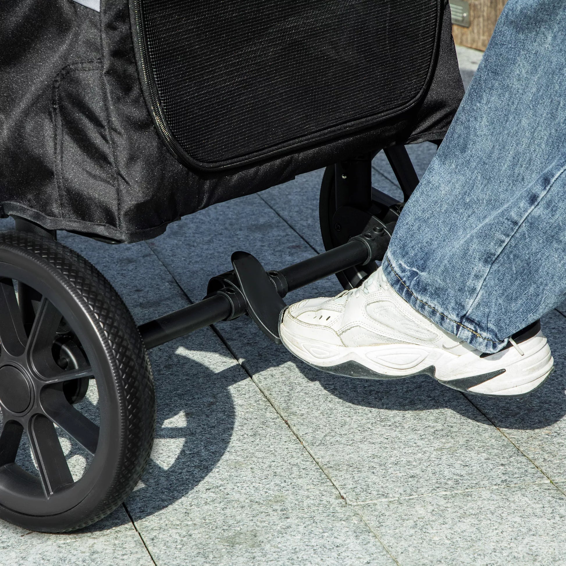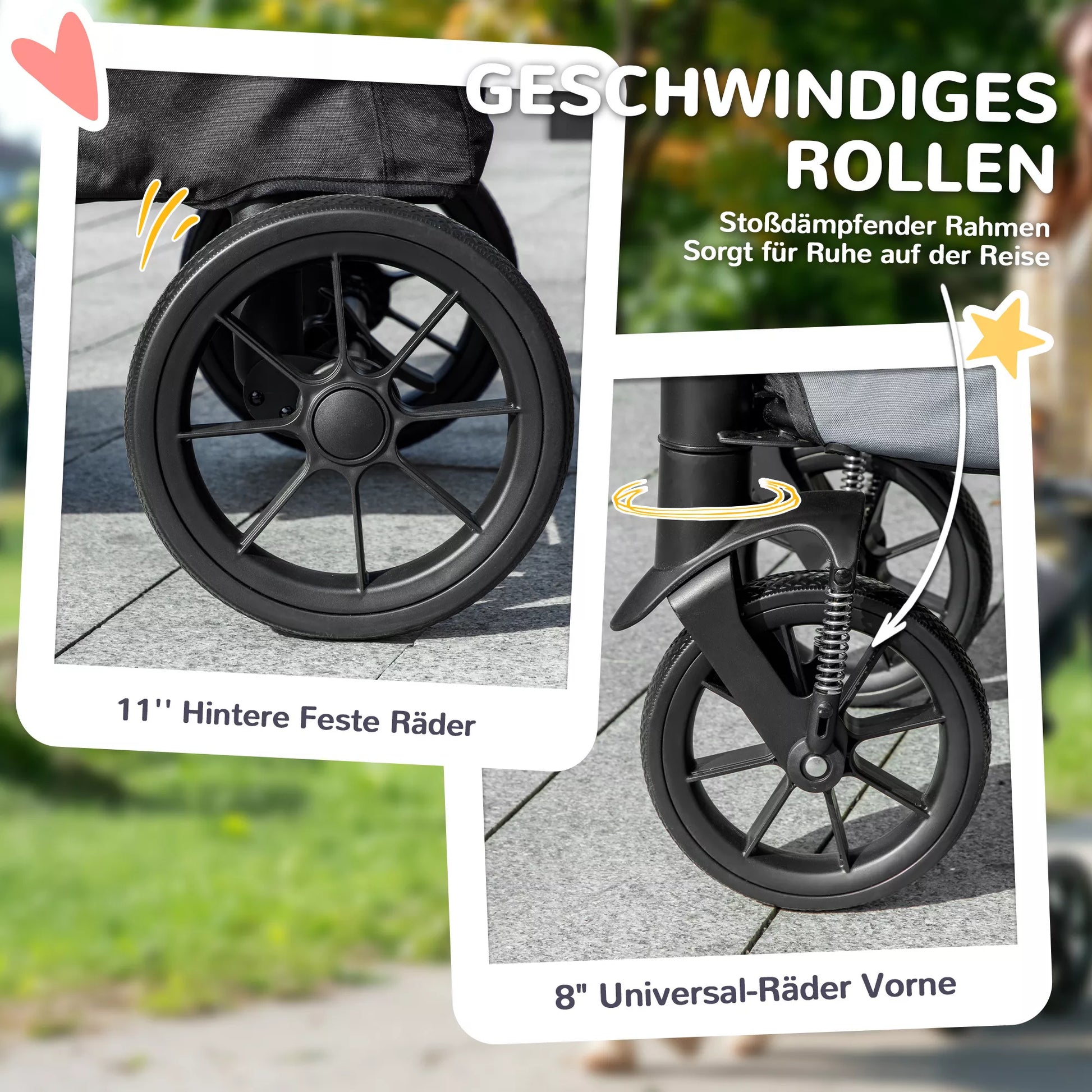 Šunų vežimėlis, sulankstomas vežimėlis dideliems šunims, augintinių vežimėlis su 4 ratais, saugos diržais, stabdžiais, pilkas