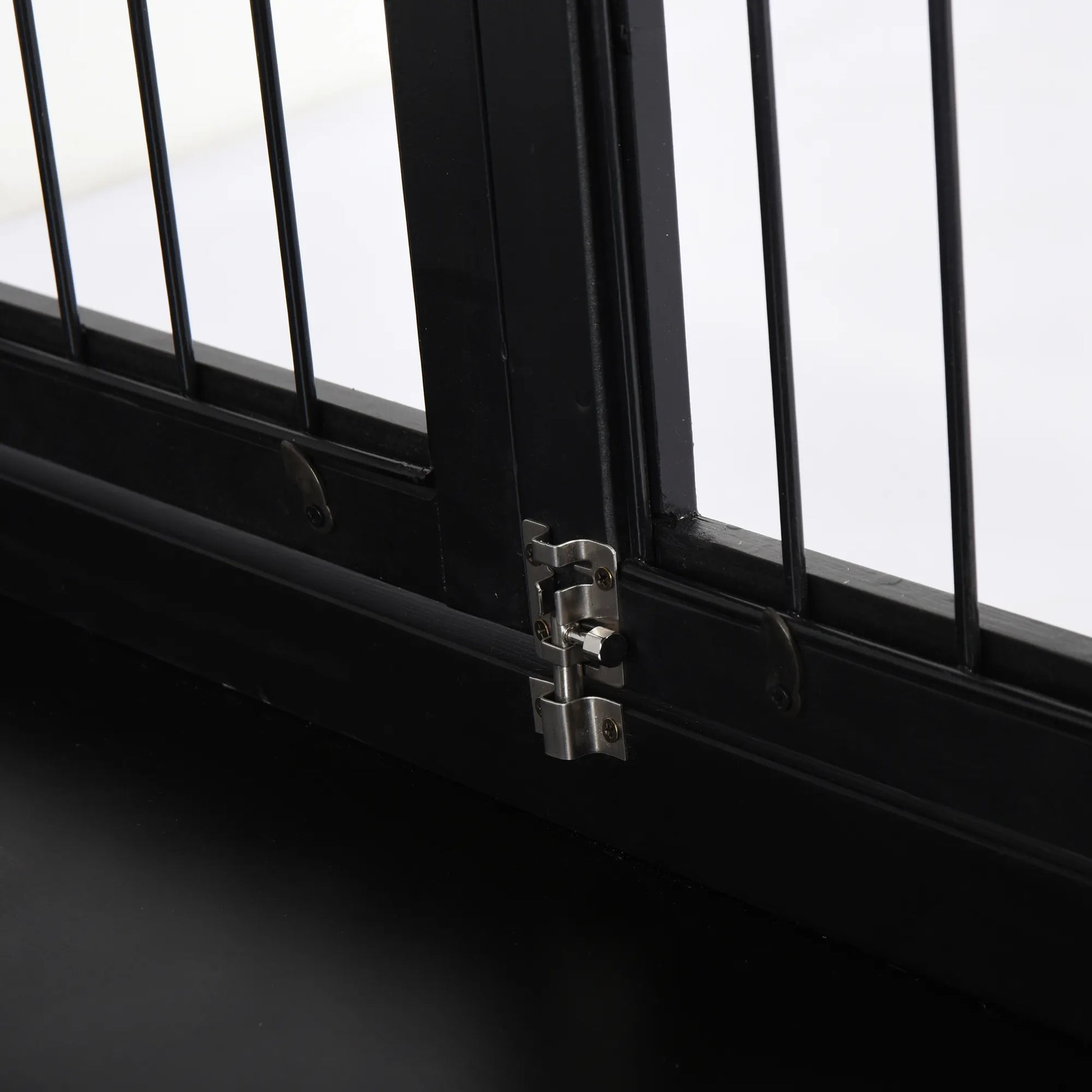 - ✔ Modernus šunų narvo dizainas: juodi užraktai ir arkos formos langai šoninėse sienelėse