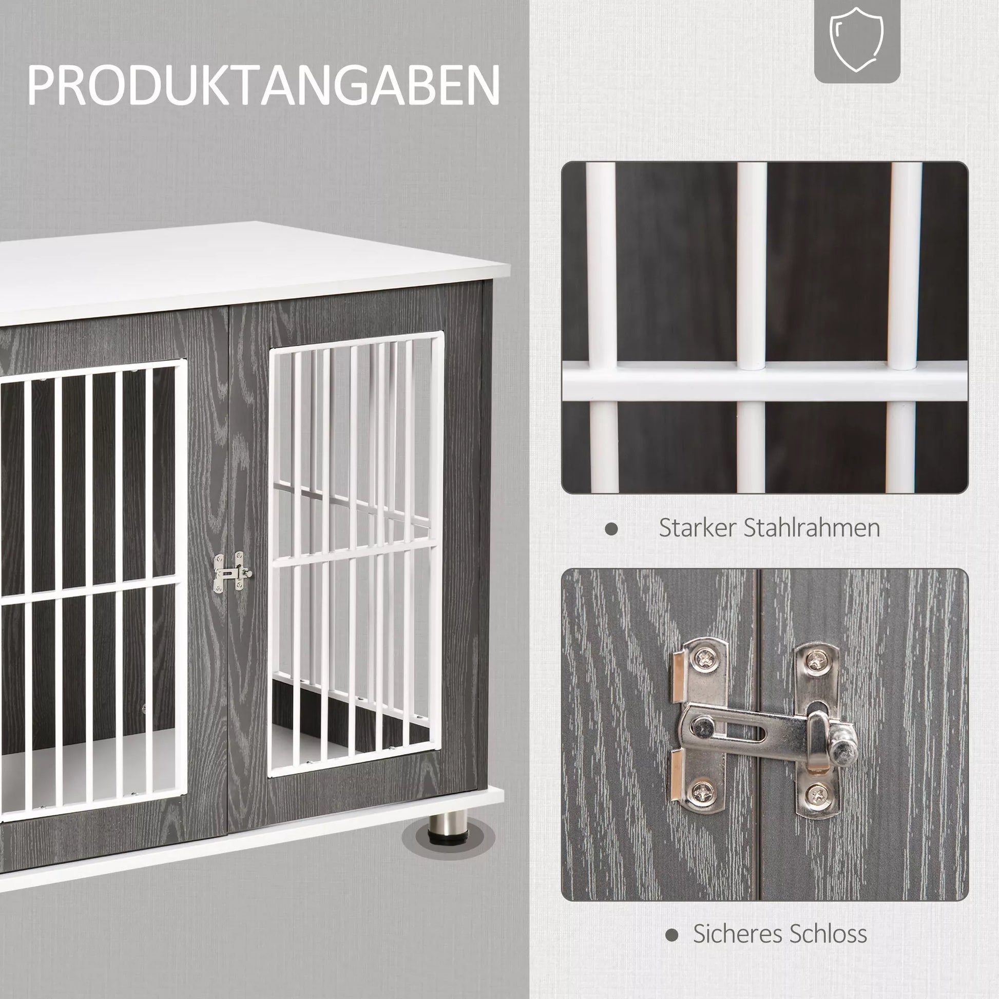 Ieškote transportavimo dėžės savo šuniui? Ši transportavimo dėžė iš išspręs jūsų problemas. Dviejų spalvų šios šunų dėžės išvaizda yra moderni. Tvirtas medžio drožlių plokštės ir plieninių grotelių konstrukcija yra stabili ir leidžia stebėti jūsų augintinį. Be to, durys yra užrakinamos, siekiant užtikrinti jūsų gyvūno saugumą.