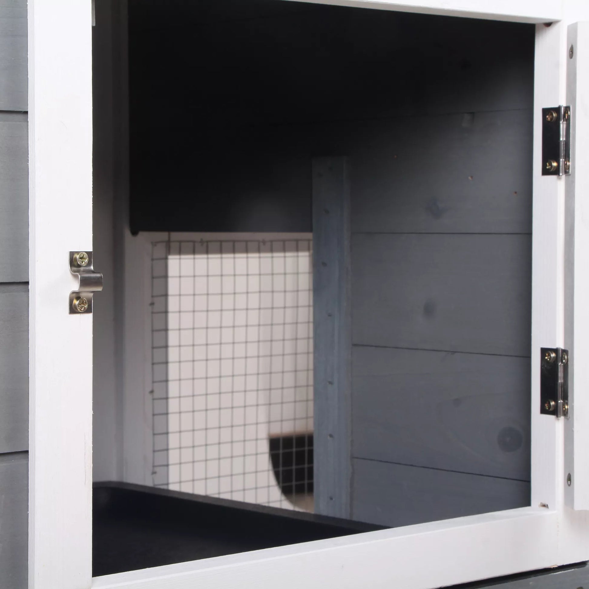 - ✔ Išimami, apačioje esantys stumiamieji padėklai ir kelios triušių narvo durys, kad būtų lengva valyti