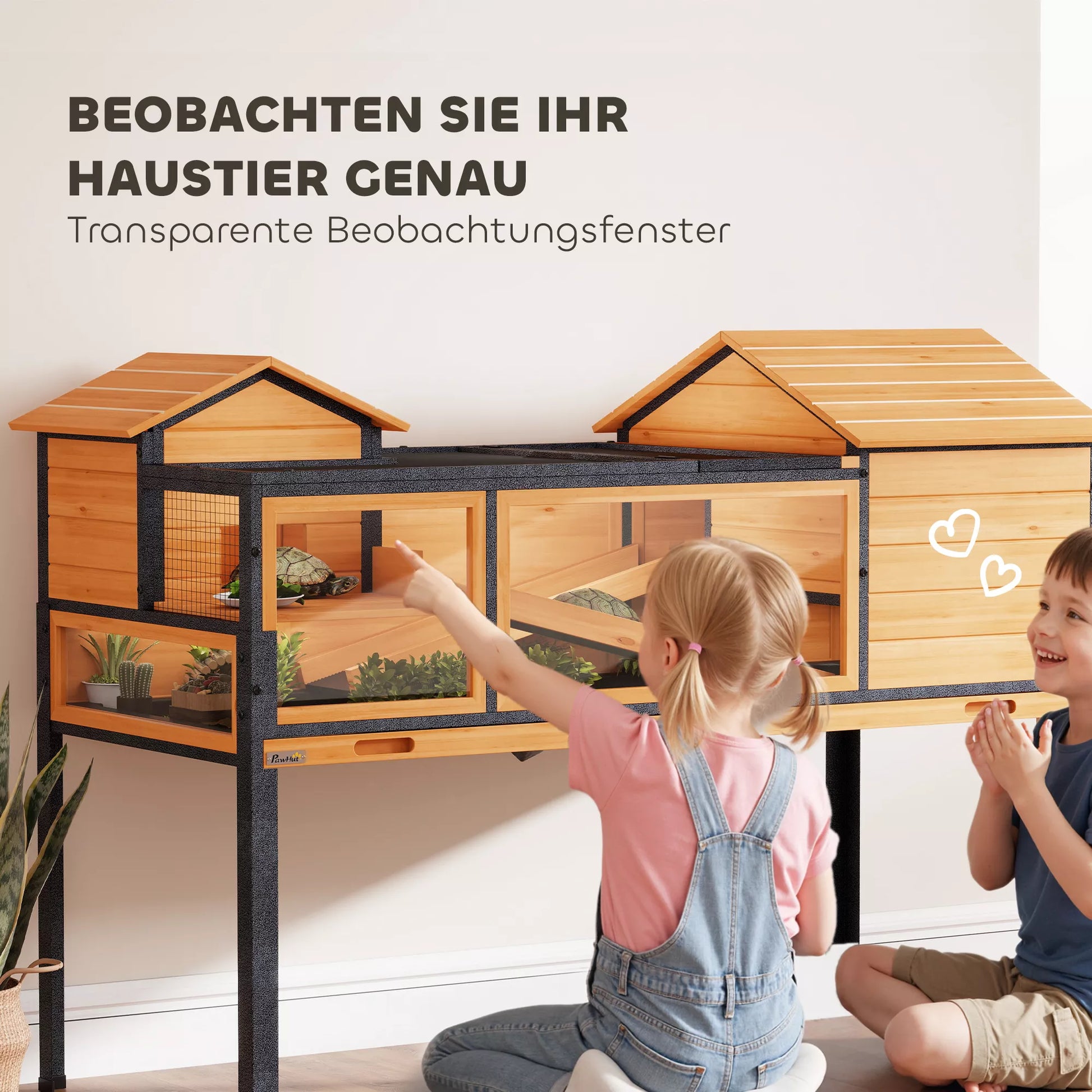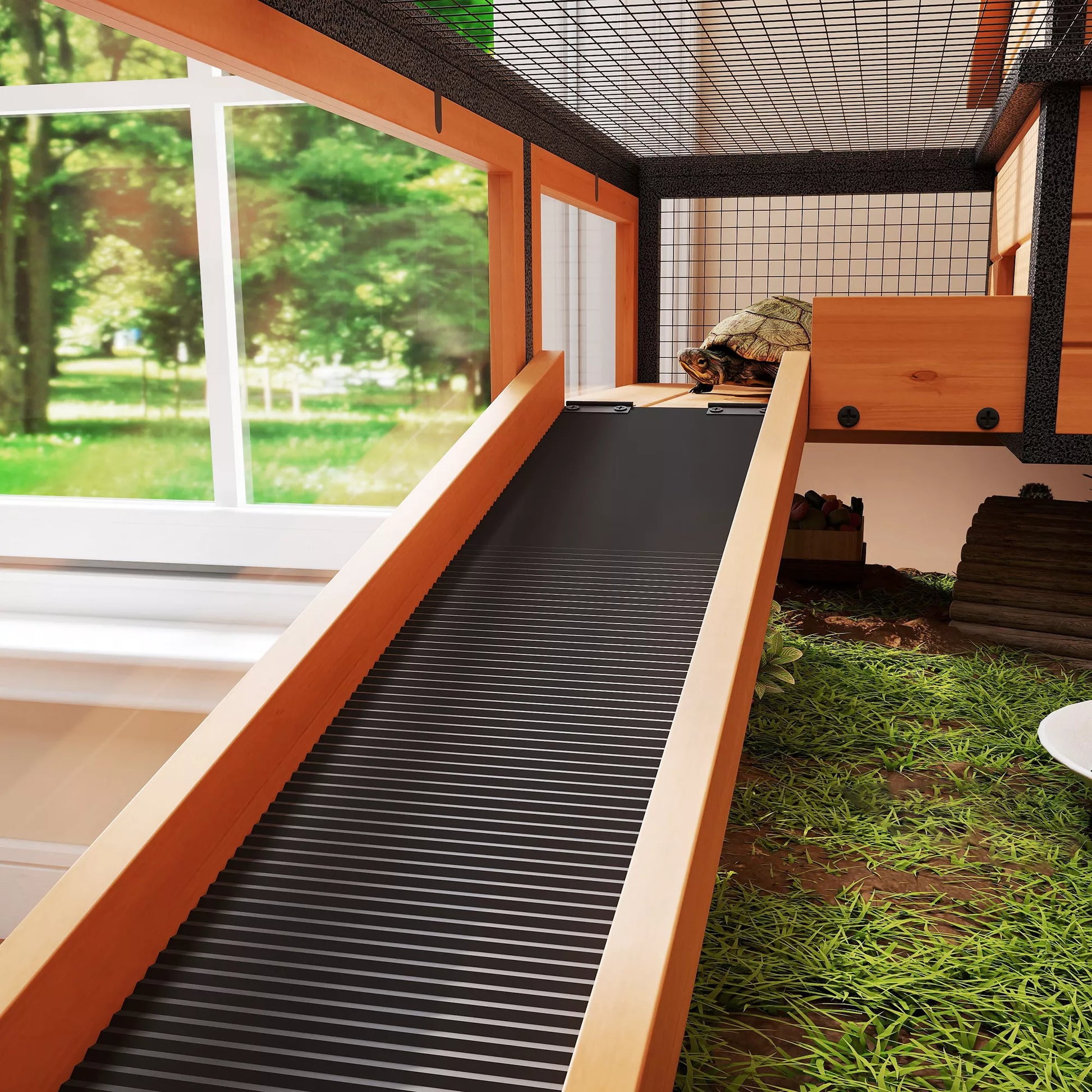 Palepinkite savo vėžlį su šiuo stilingu N/A vėžlių nameliu. Pagamintas iš tvirto eglės medienos ir plieno rėmo, jis suteikia dvi slėptuves, saulės deginimosi zoną ir daug vietos apačioje poilsiui ir tyrinėjimui. Skaidrūs stebėjimo langeliai leidžia lengvai stebėti, o atidaromas viršus su ištraukiamu padėklu ir paaukštintas dizainas palengvina valymą.