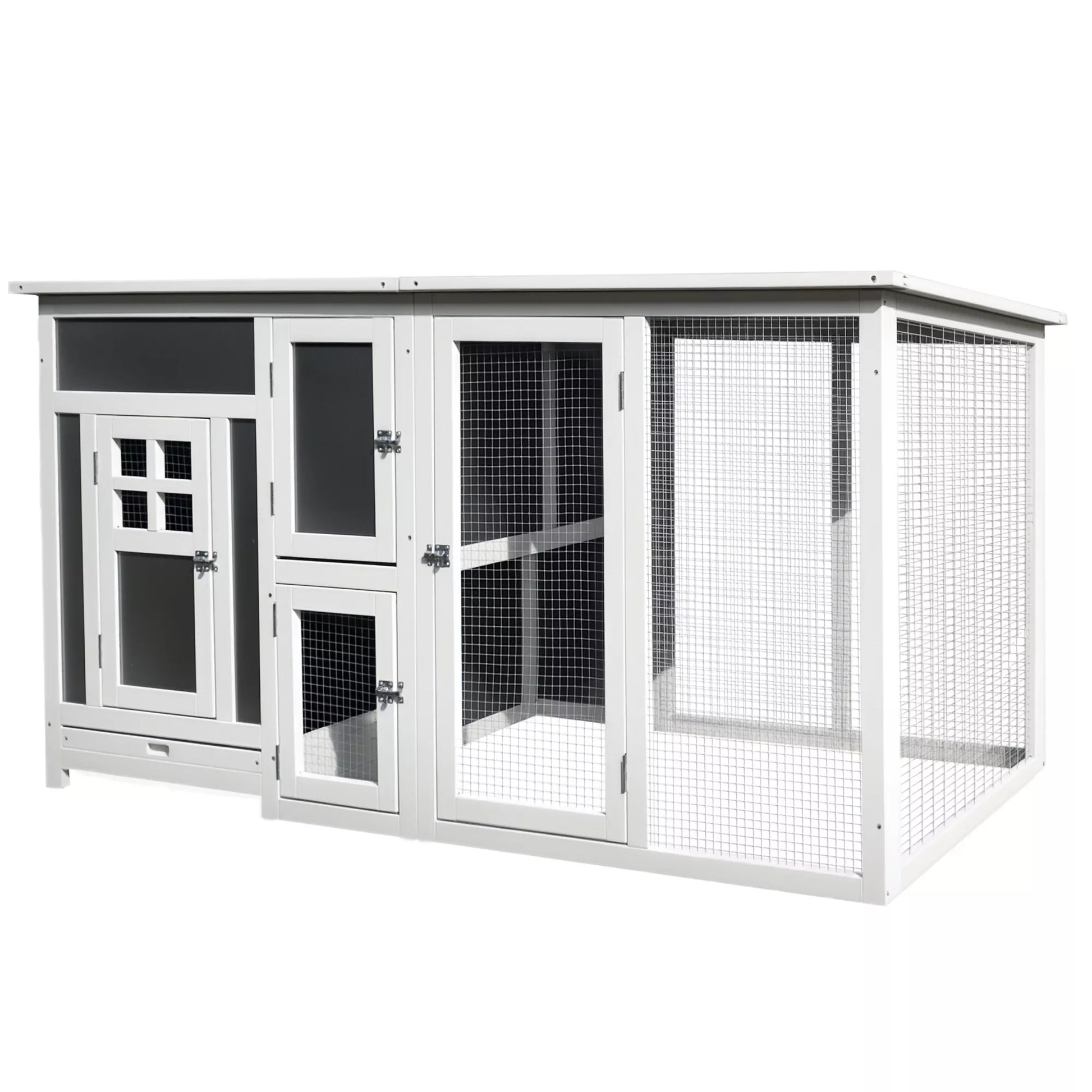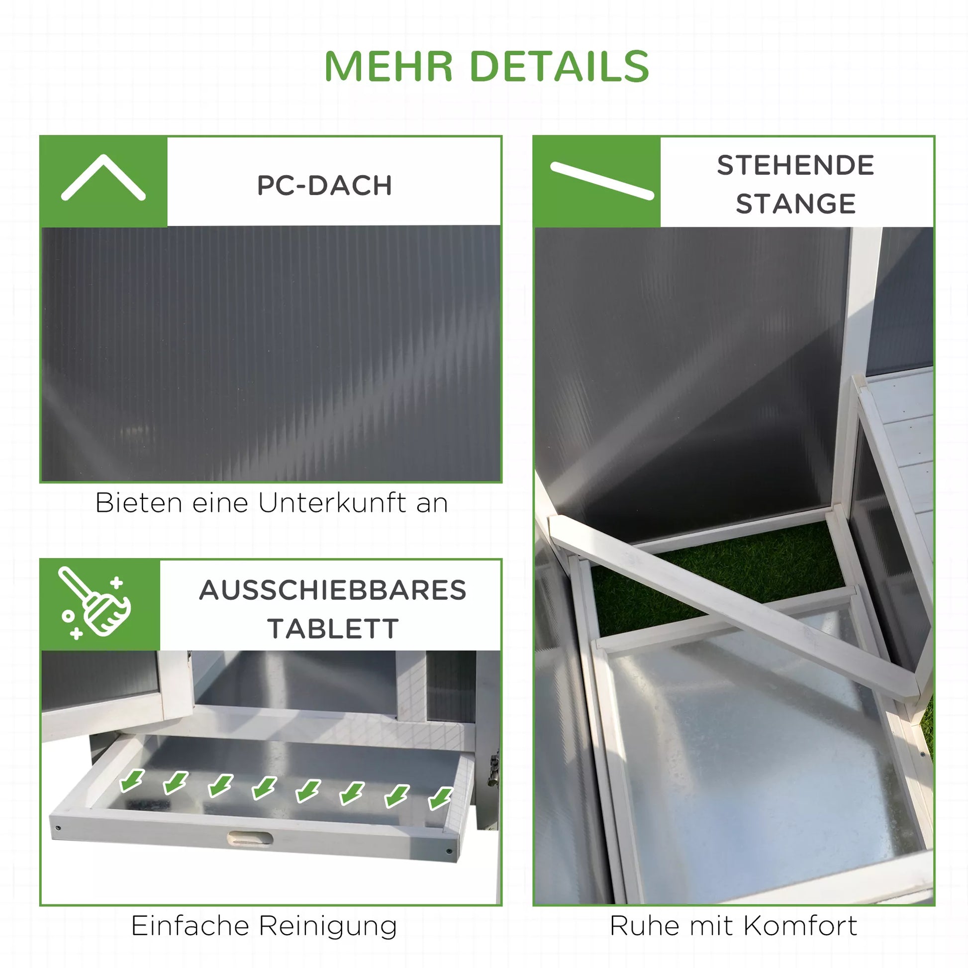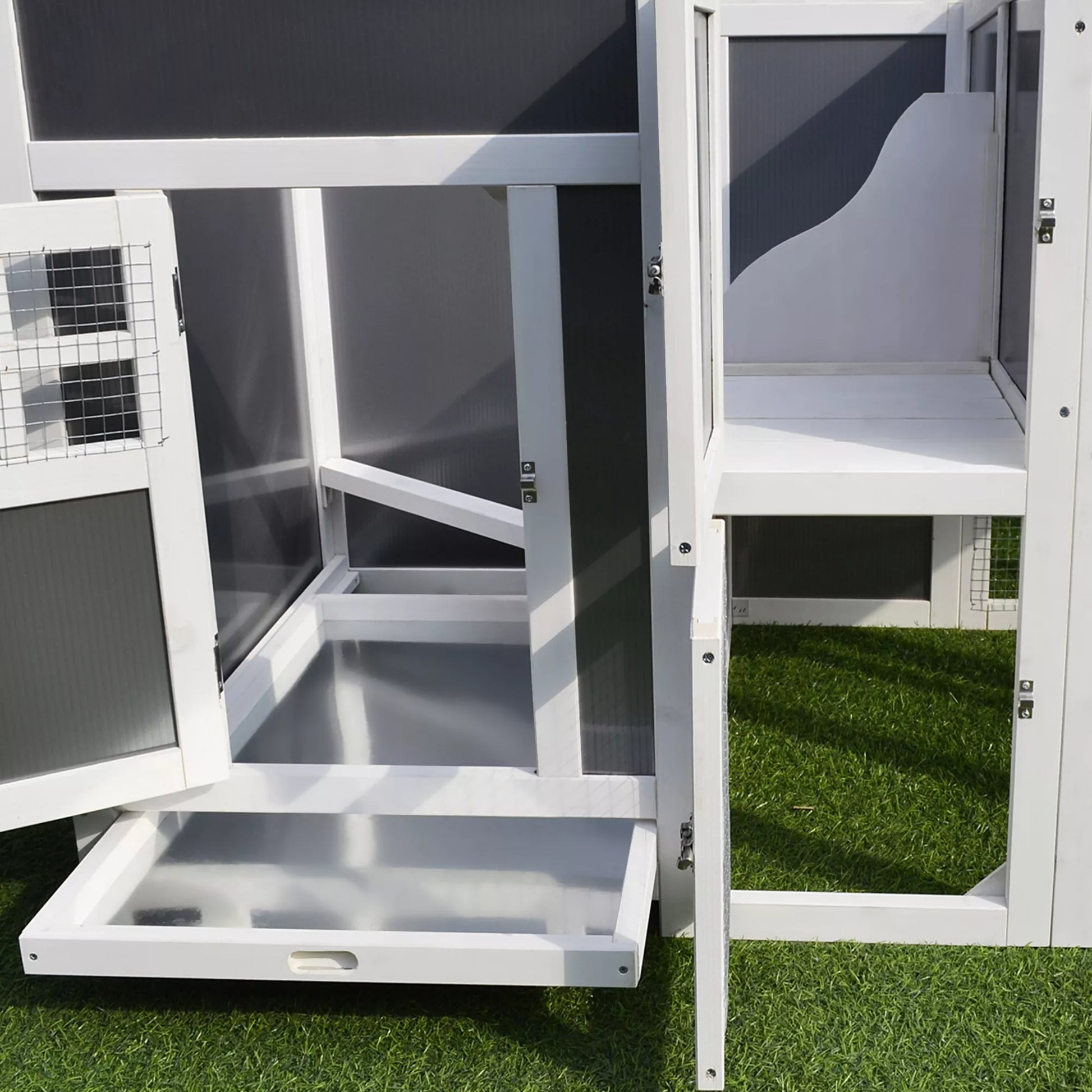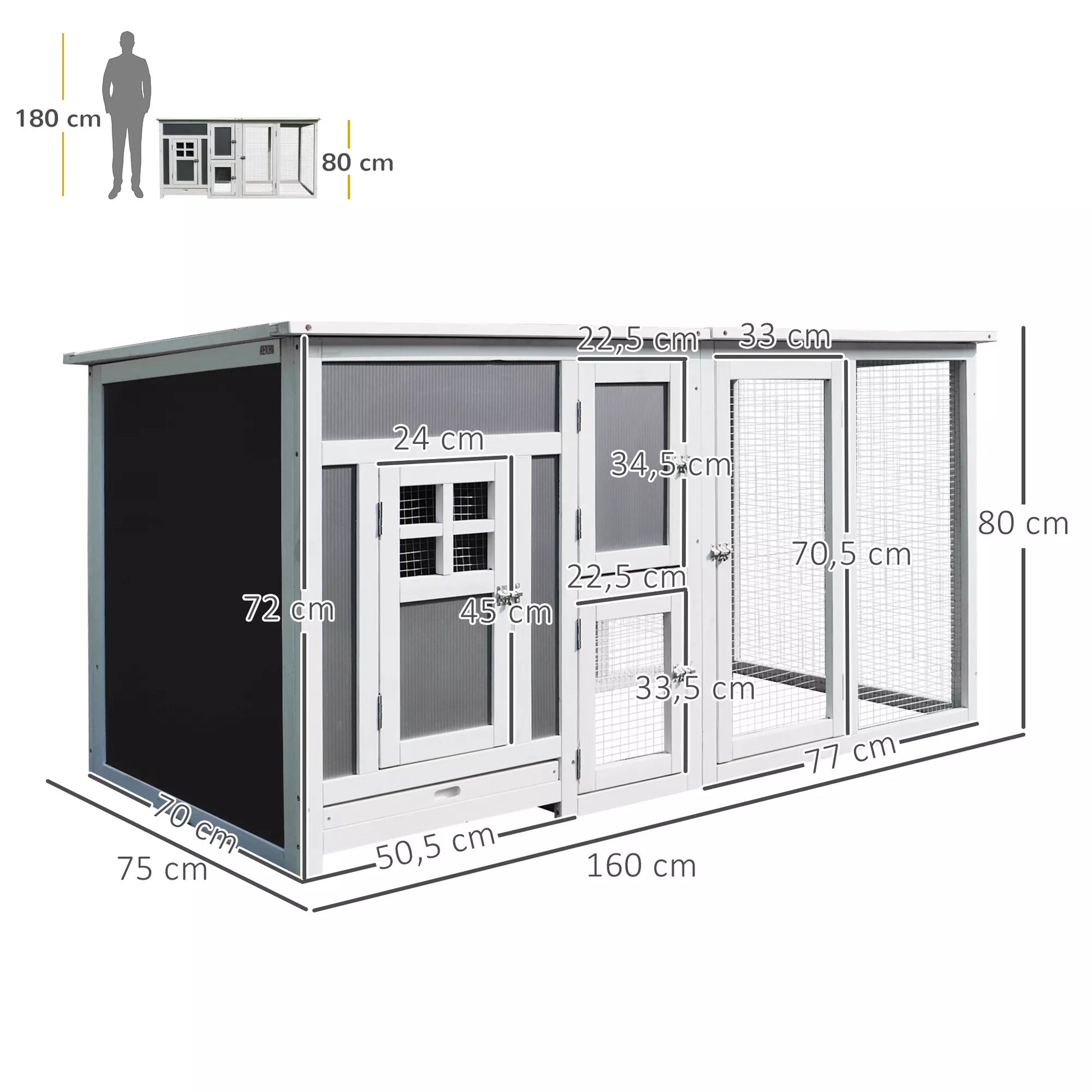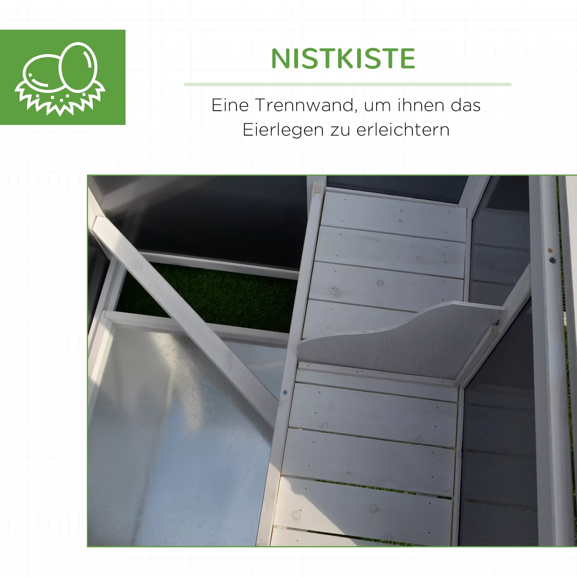 Vištidė vištų namelis, tinkama 1-2 vištoms, su lizdų dėže, 2 skyrių kiaušinių dėžė, pušis, pilka+balta, 160 x 75 x 80 cm