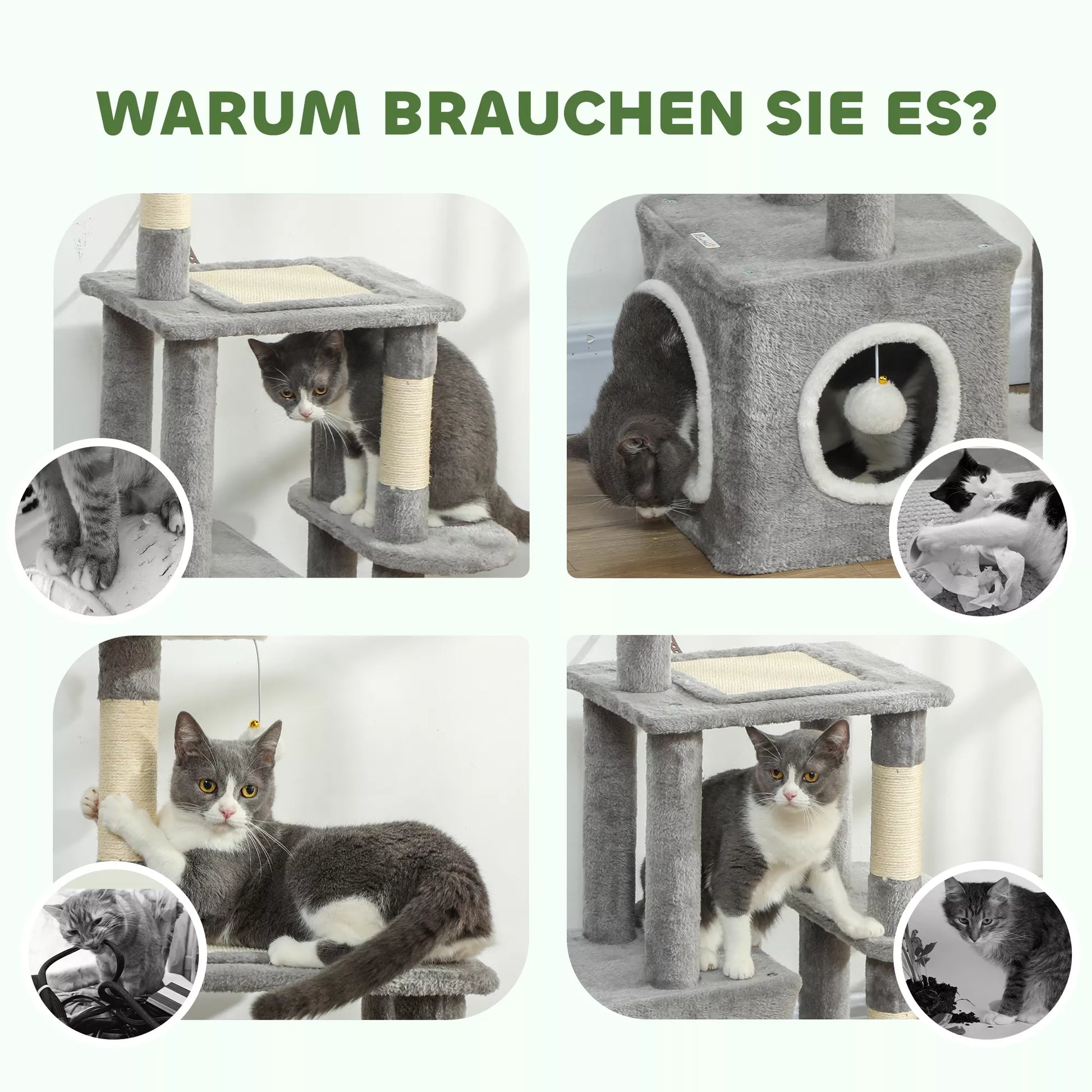 • ✔ 107 cm augsta daudzlīmeņu kaķu māja nodarbinās jūsu kaķi visu dienu