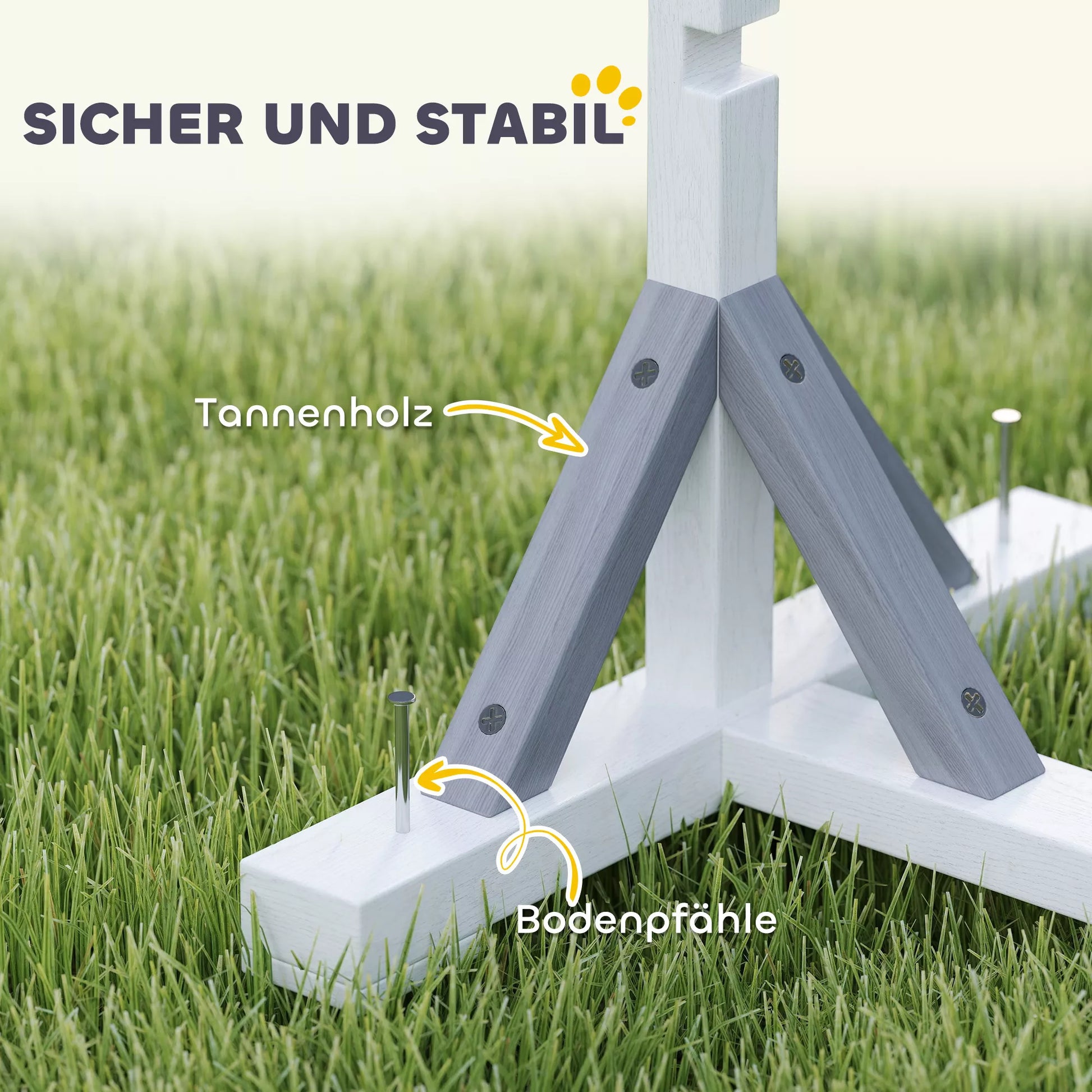- ✔ Suņu veiklības komplekts ir izgatavots no egles koka un plastmasas, garantējot drošību un izturību