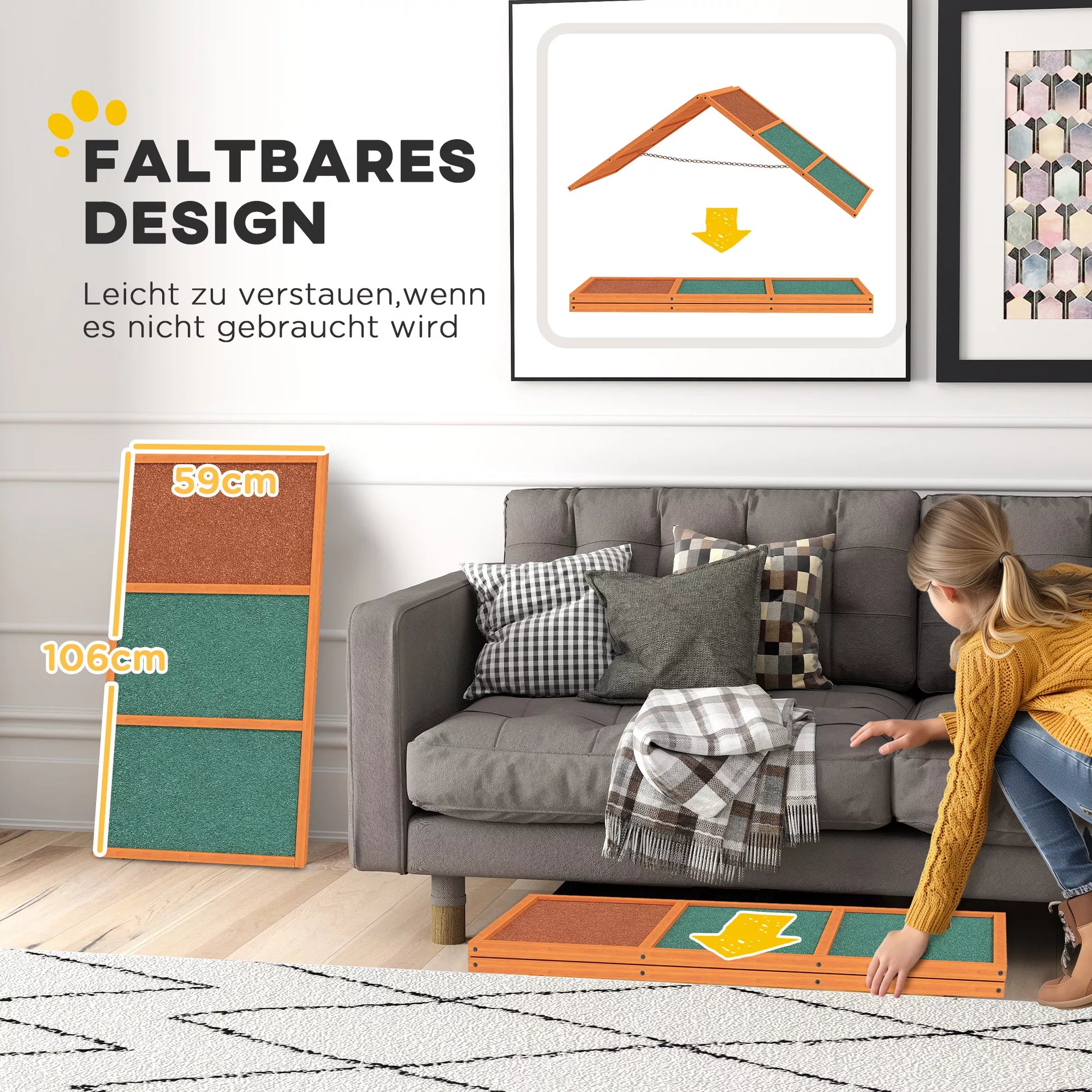 Suņu rampa Agility, salokāma, ar regulējamu augstumu, neslīdoša, no egles koka, līdz 40 kg, 173 x 59 x 66 cm, oranža/zaļa