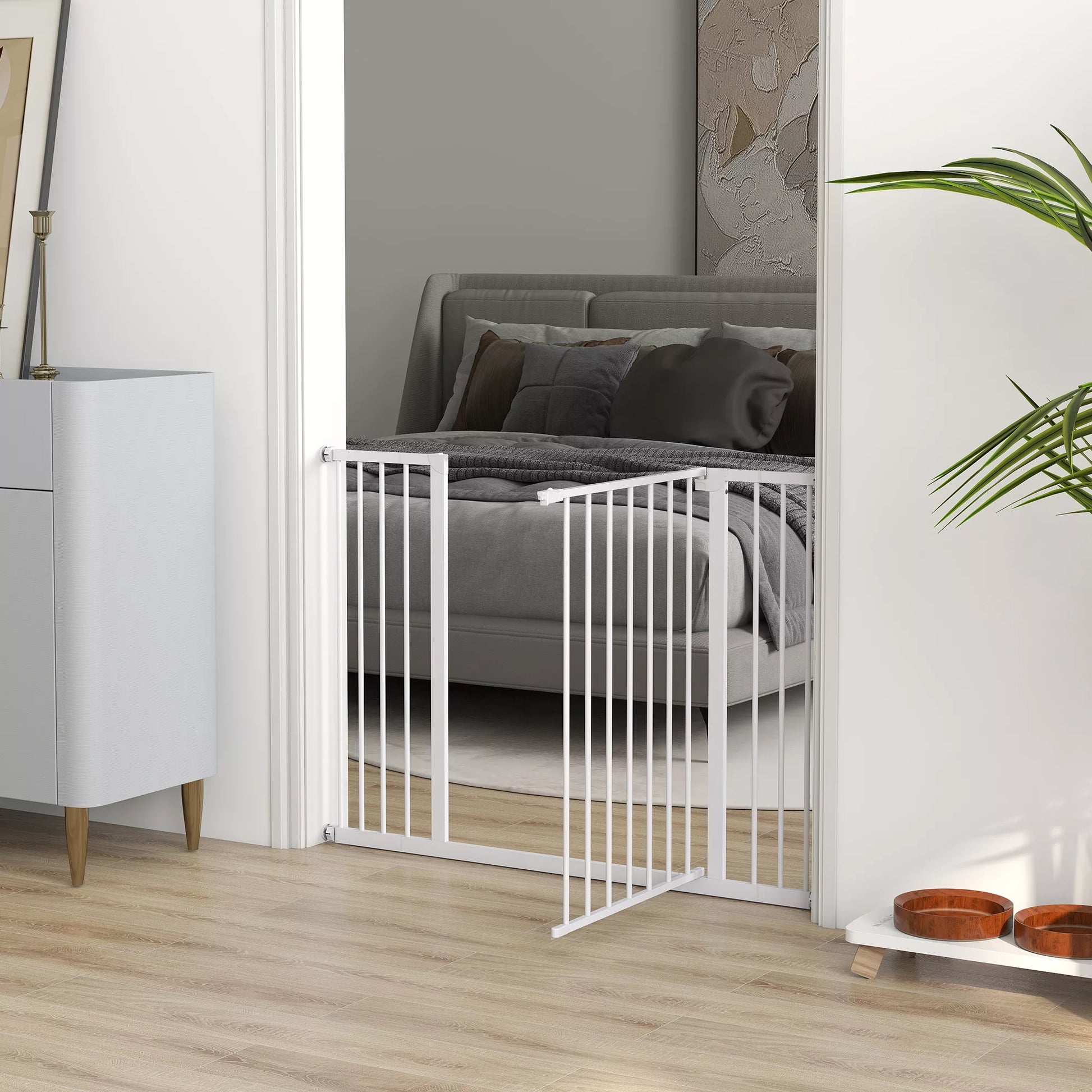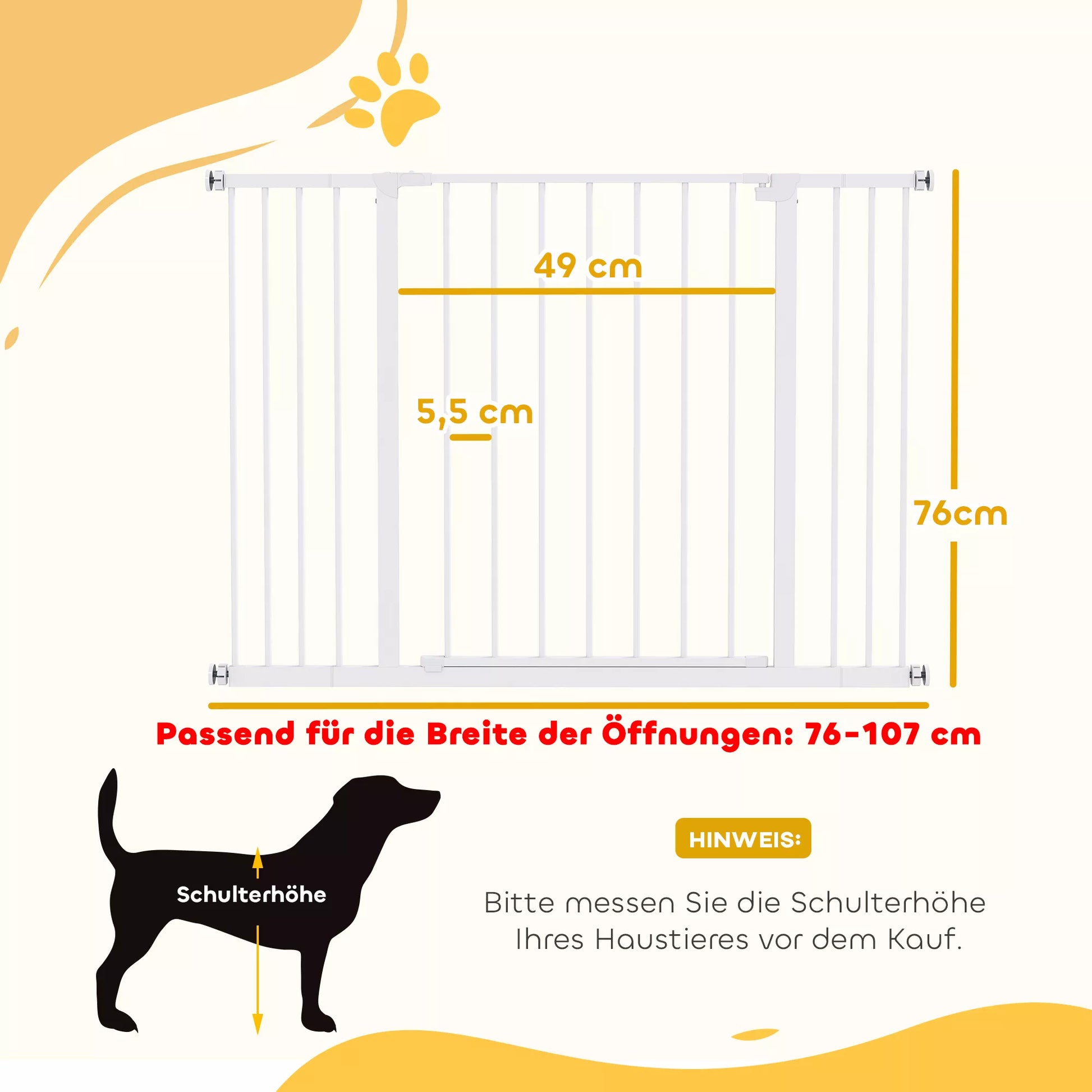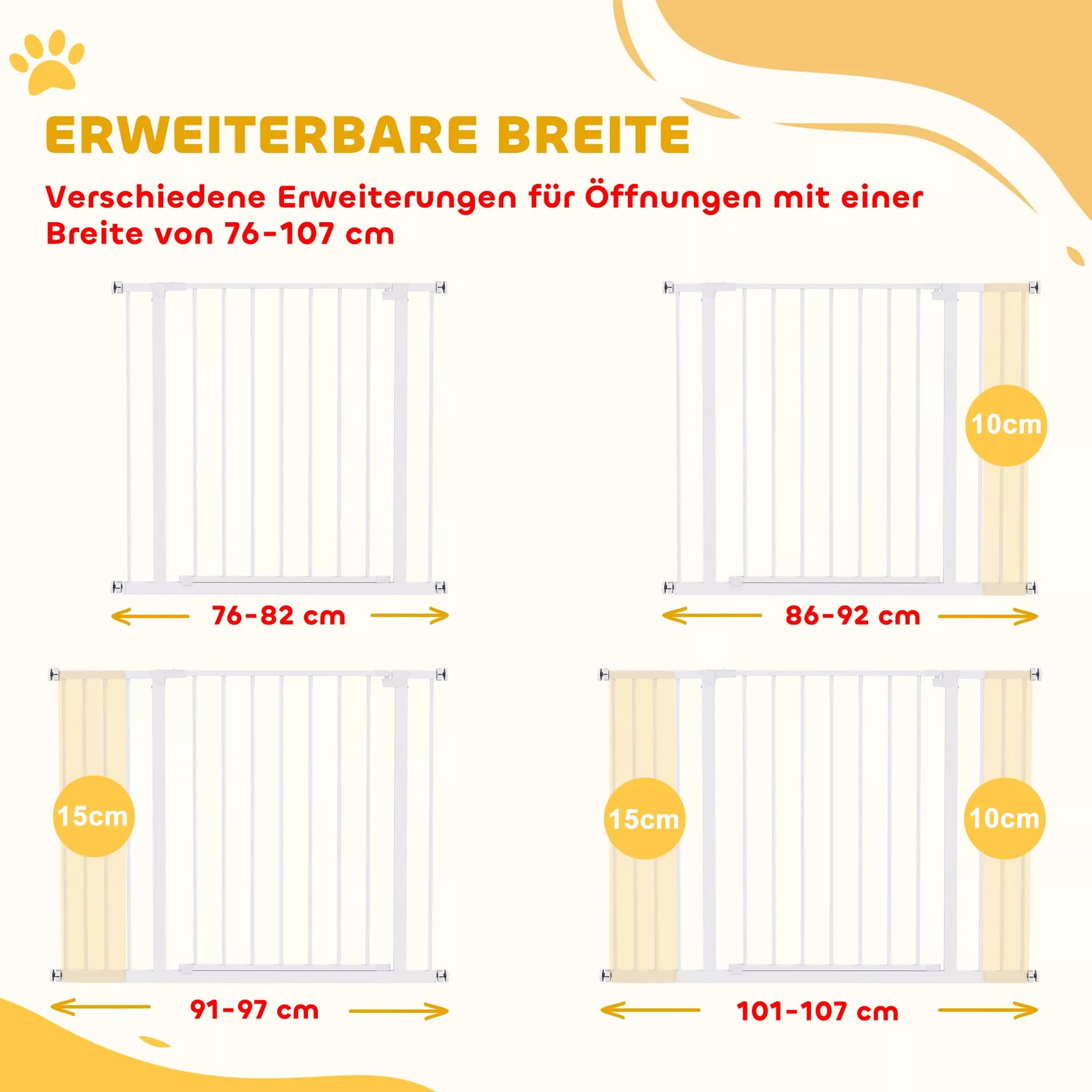 Drošības vārti durvīm, kāpņu drošības vārti bez urbšanas, suņu vārti, drošības vārti mājdzīvniekiem, suņu vārti, stiprinājums ar skavu, metāla, balti, 76-107 x 76 cm