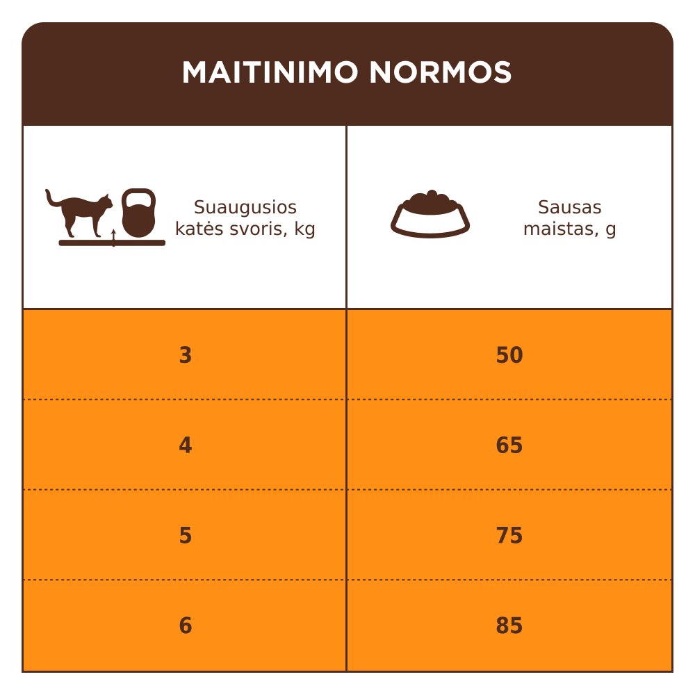 (LT) **Pieauguša kaķa svars, kg. ***Sausā barība, g.