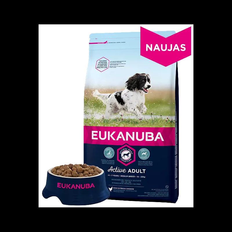 Eukanuba pilnvērtīga barība pieaugušajiem ar vidēji šķirņu suņiem ar vistu, 15 kg