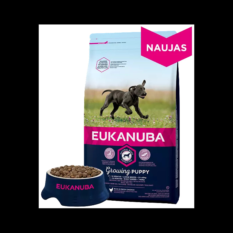 Eukanuba Large Puppy pilnvērtīga barība lielo šķirņu kucēniem ar vistu, 15 kg