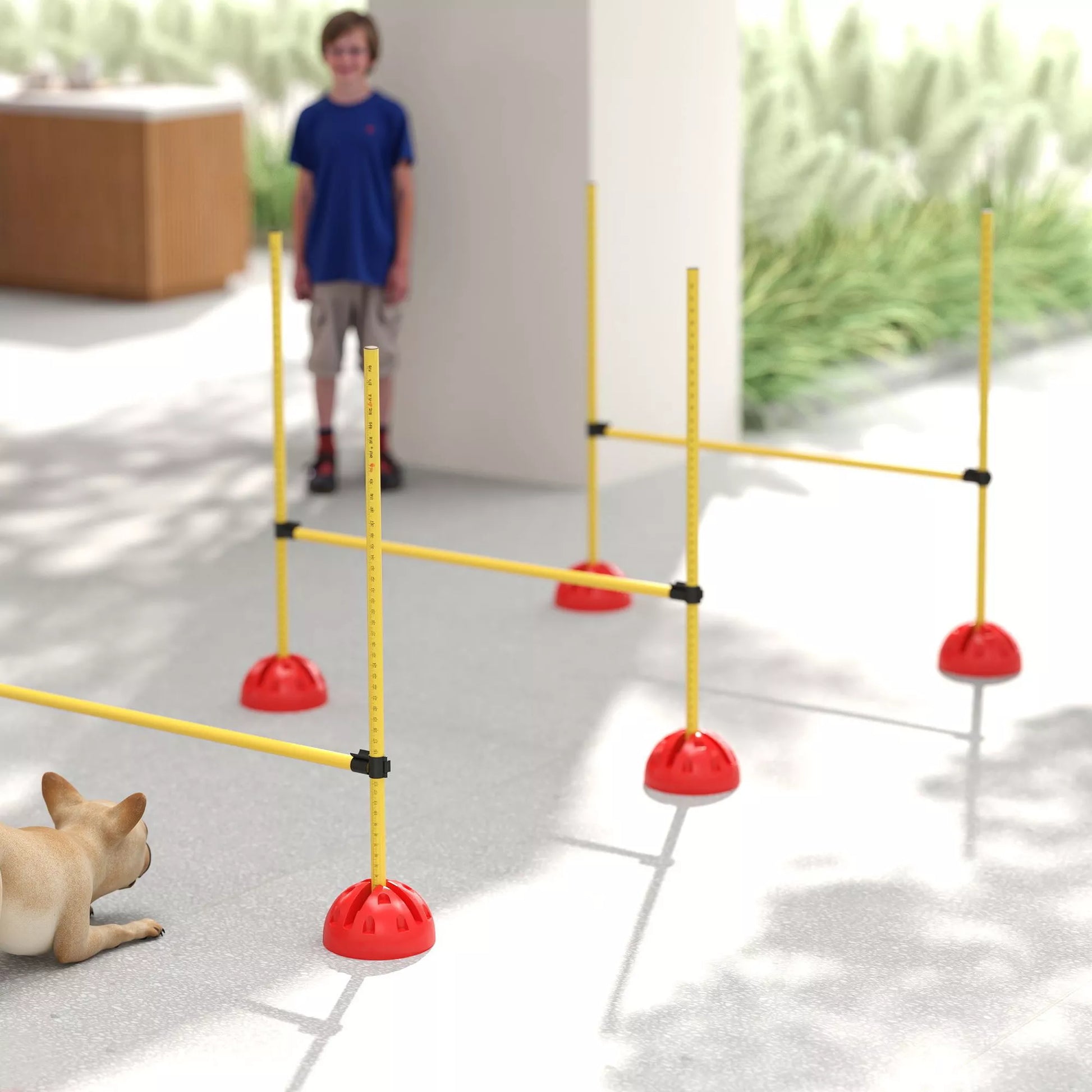 - ✔ Atzīmētās skalas uz veiklības komplekta stieņiem ļauj viegli regulēt augstumu