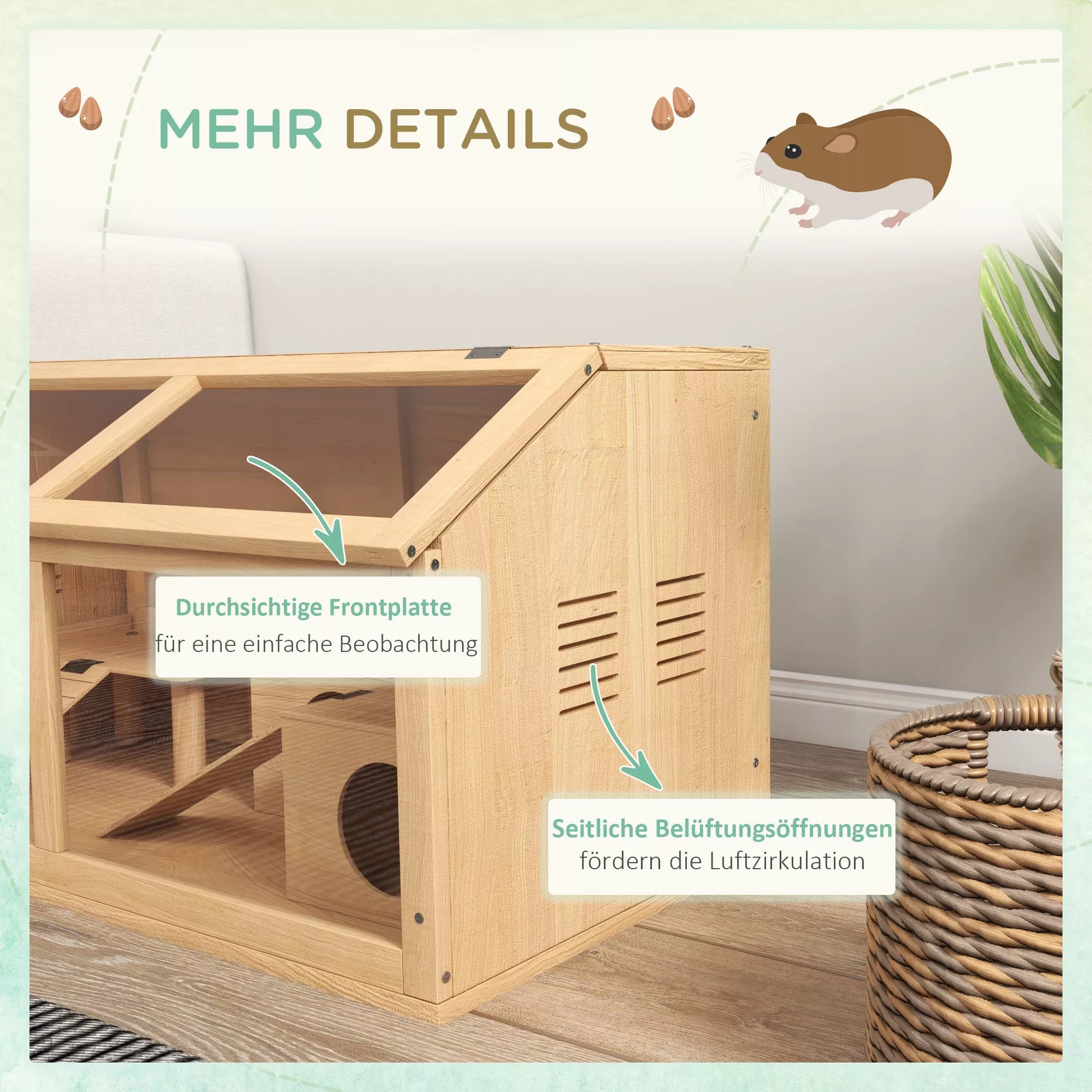 - ✔ Mazās mājdzīvnieku mājiņas priekšējais panelis ir izgatavots no caurspīdīga materiāla, kas ļauj ērti uzraudzīt mājdzīvnieka dzīvi