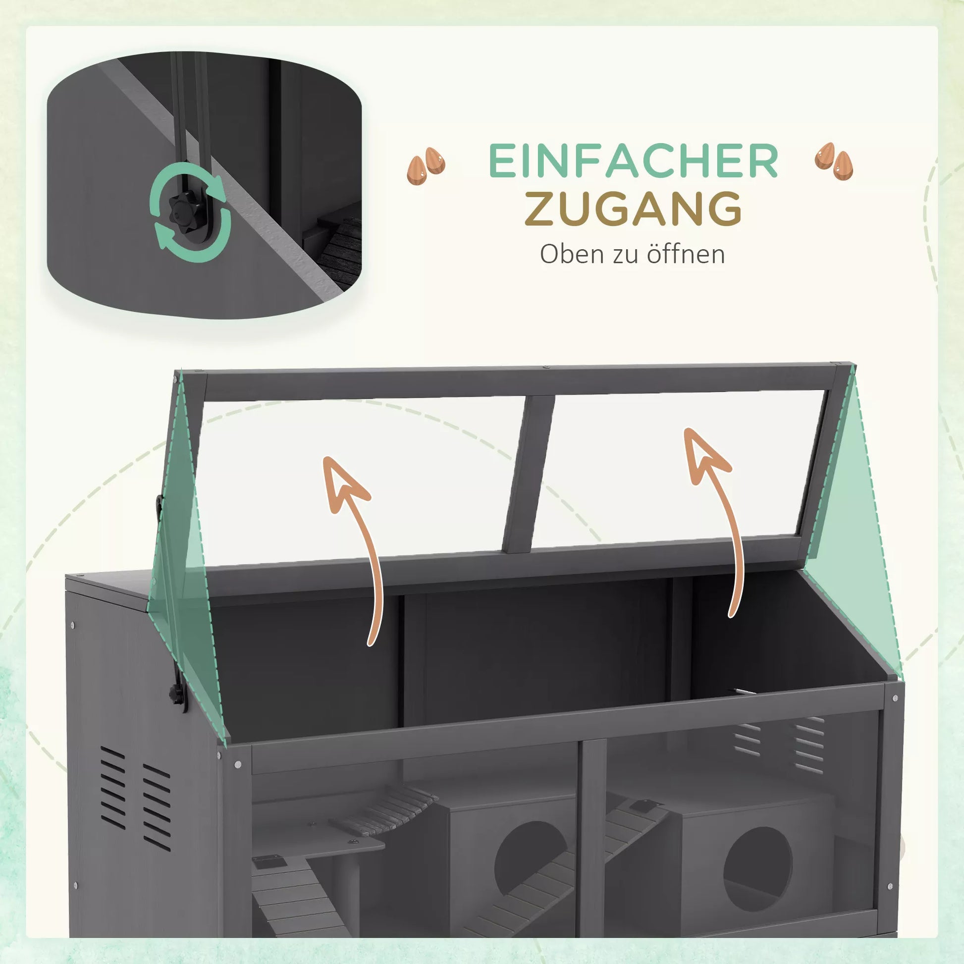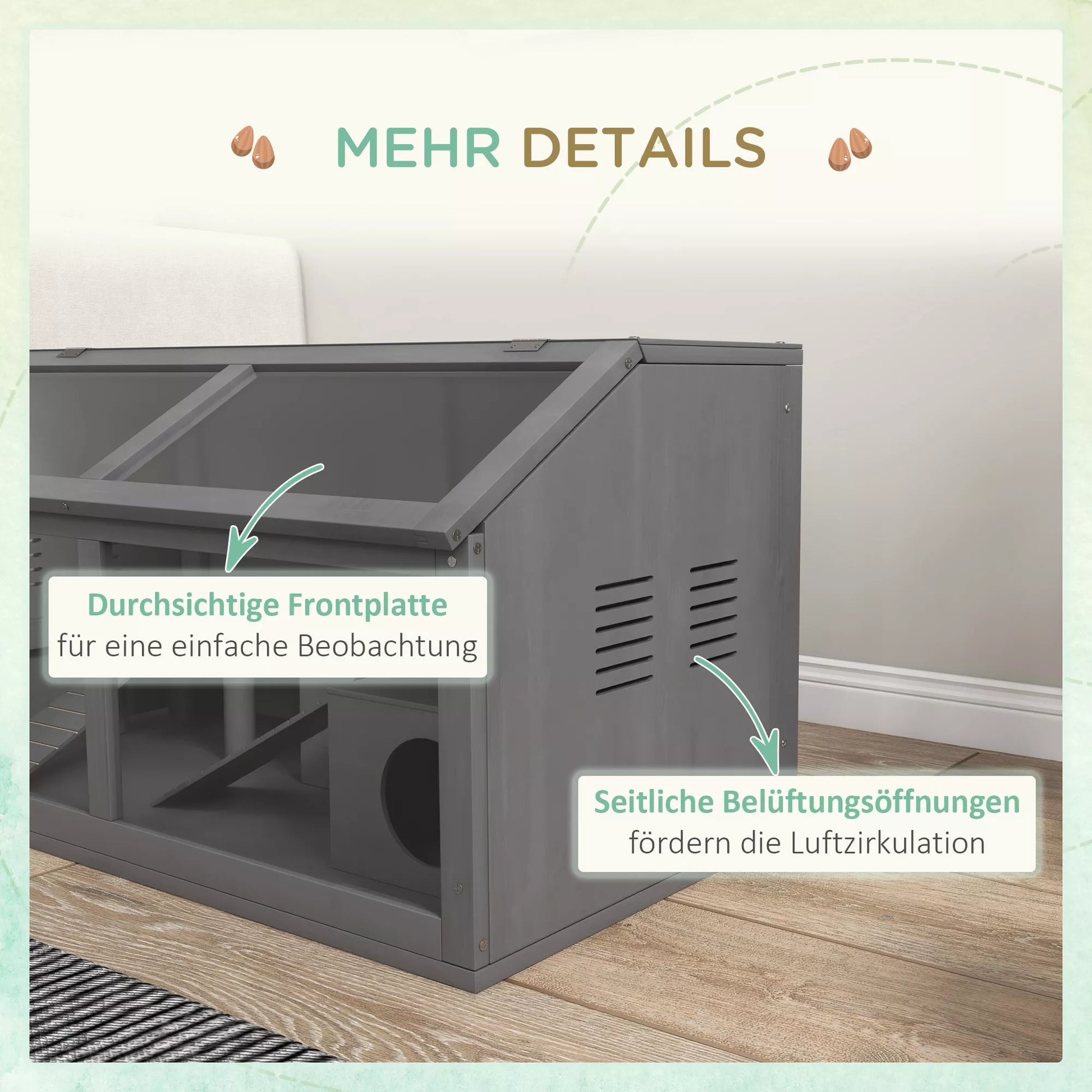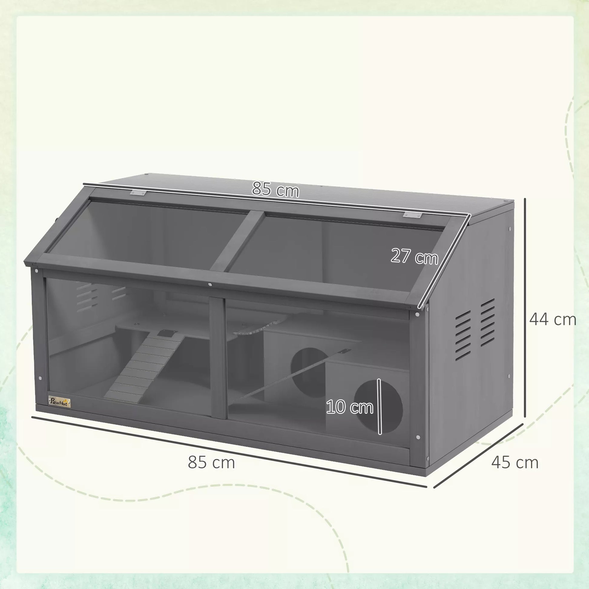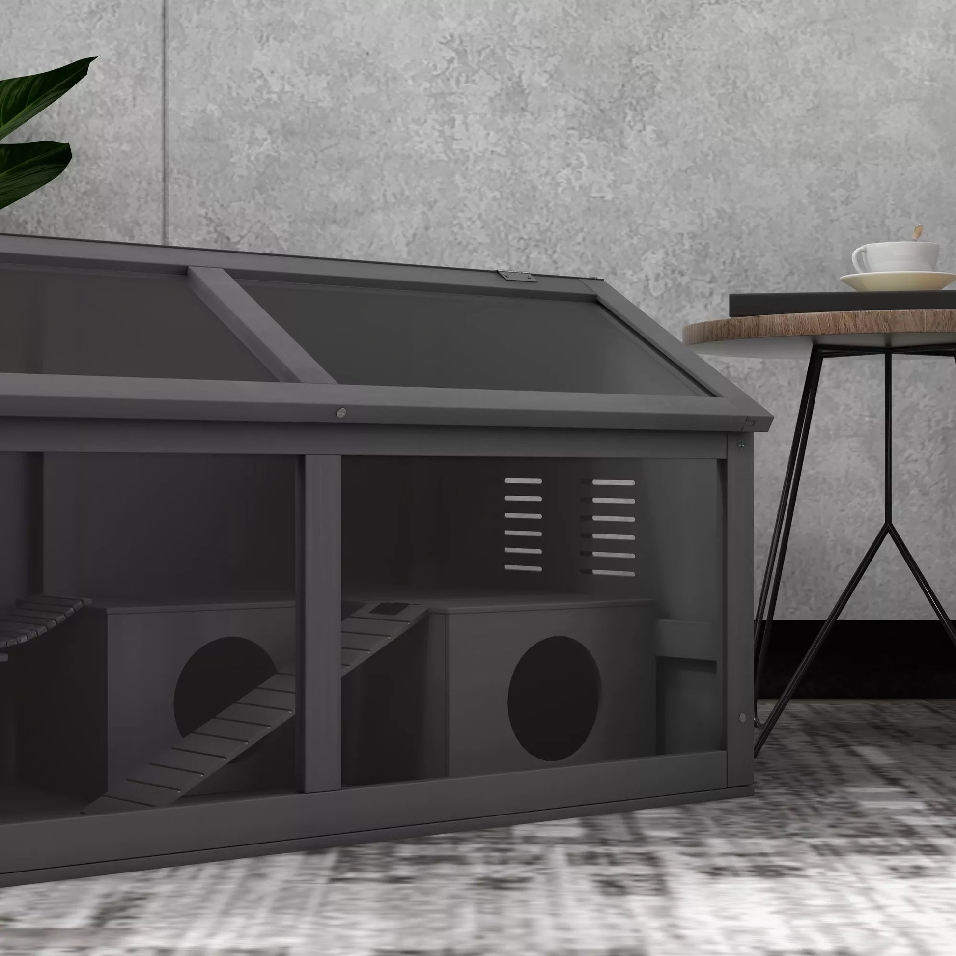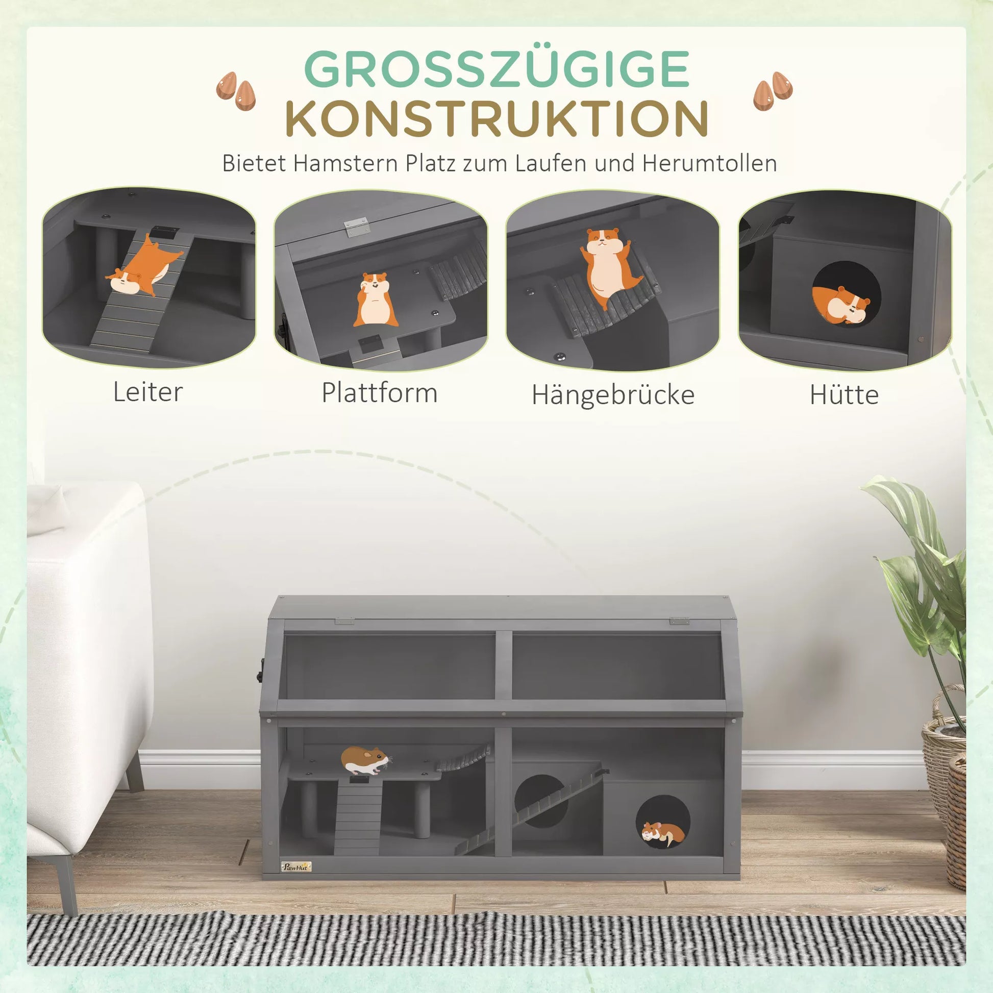 Kāmju būris, koka mazo dzīvnieku būris, piekaramais tilts, pakāpieni, mājiņa, 84 x 45 x 44 cm, maziem kāmīšiem, pelēks