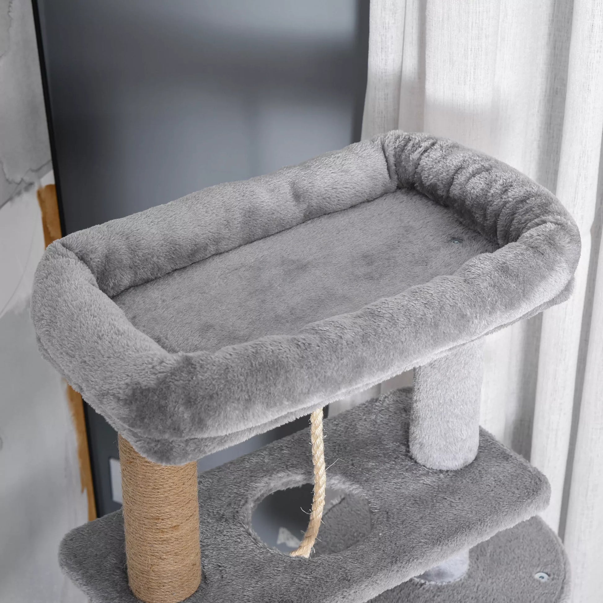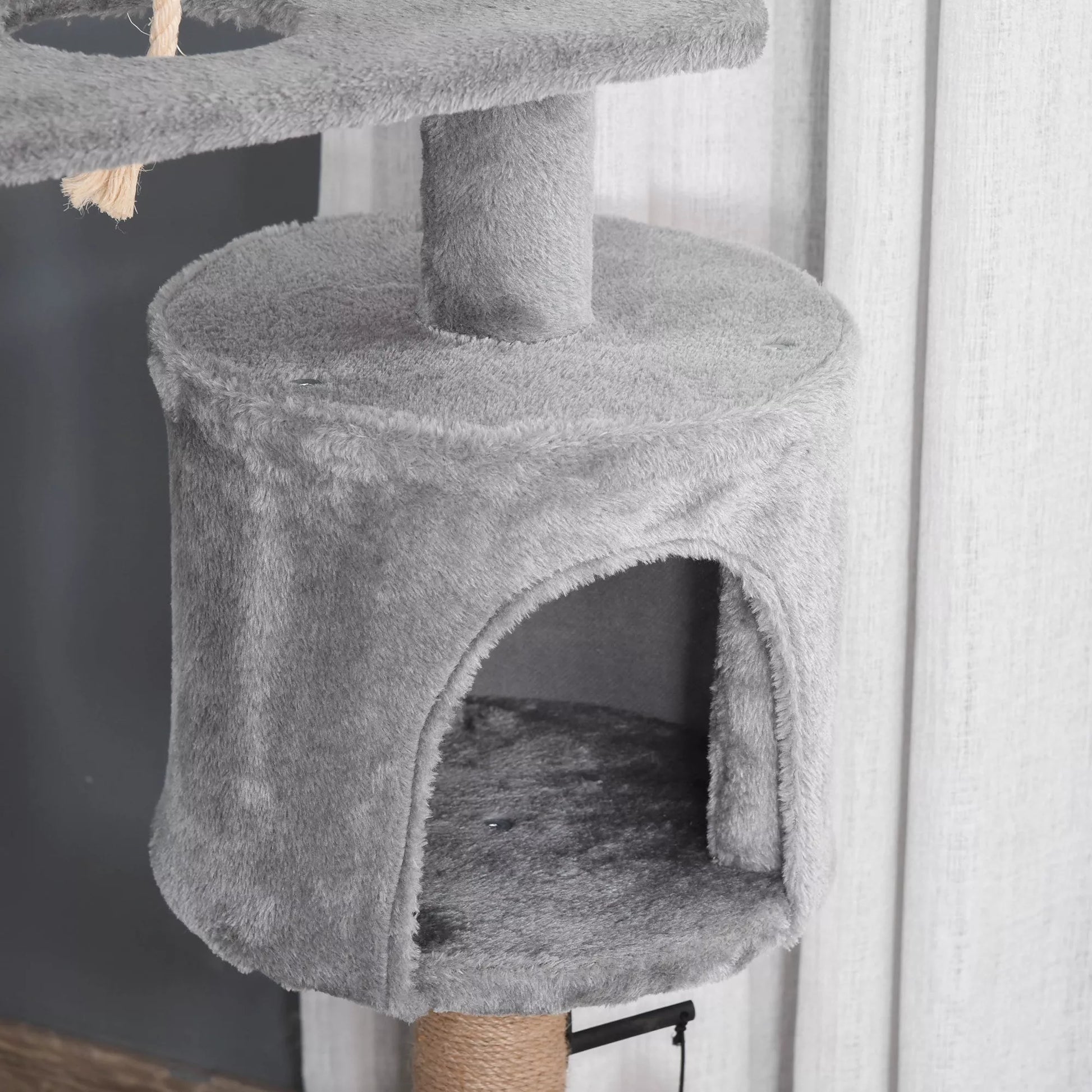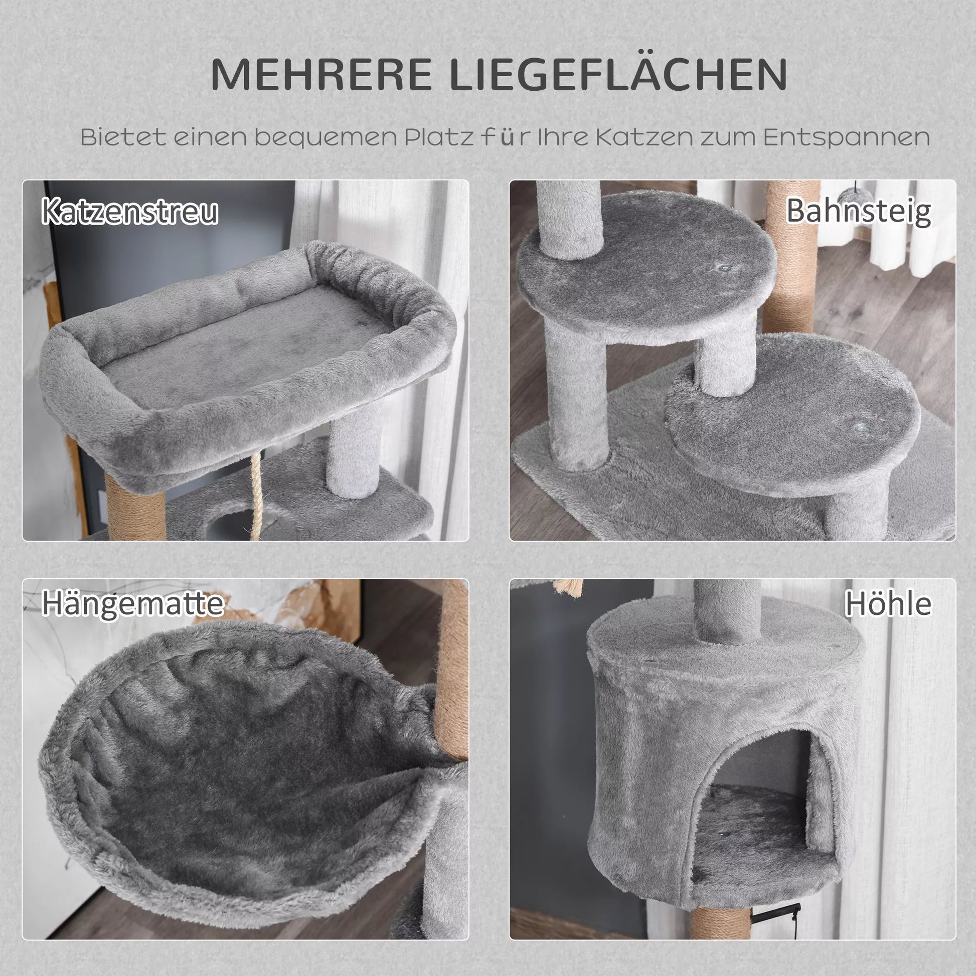 Kaķu skrāpējamais stabs, kaķu koks, 1 kaķu akmens, kaķu gulta, 1 šūpuļtīkls, ar rotaļlietām, gaiši pelēks