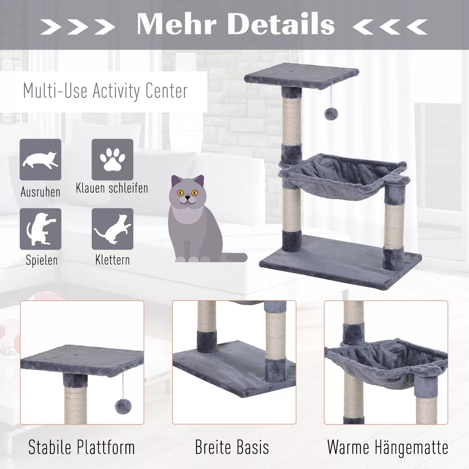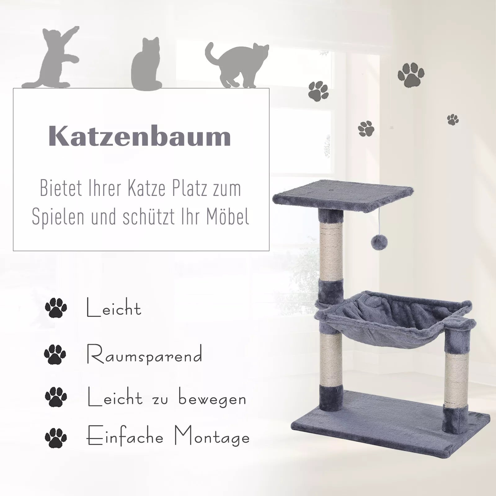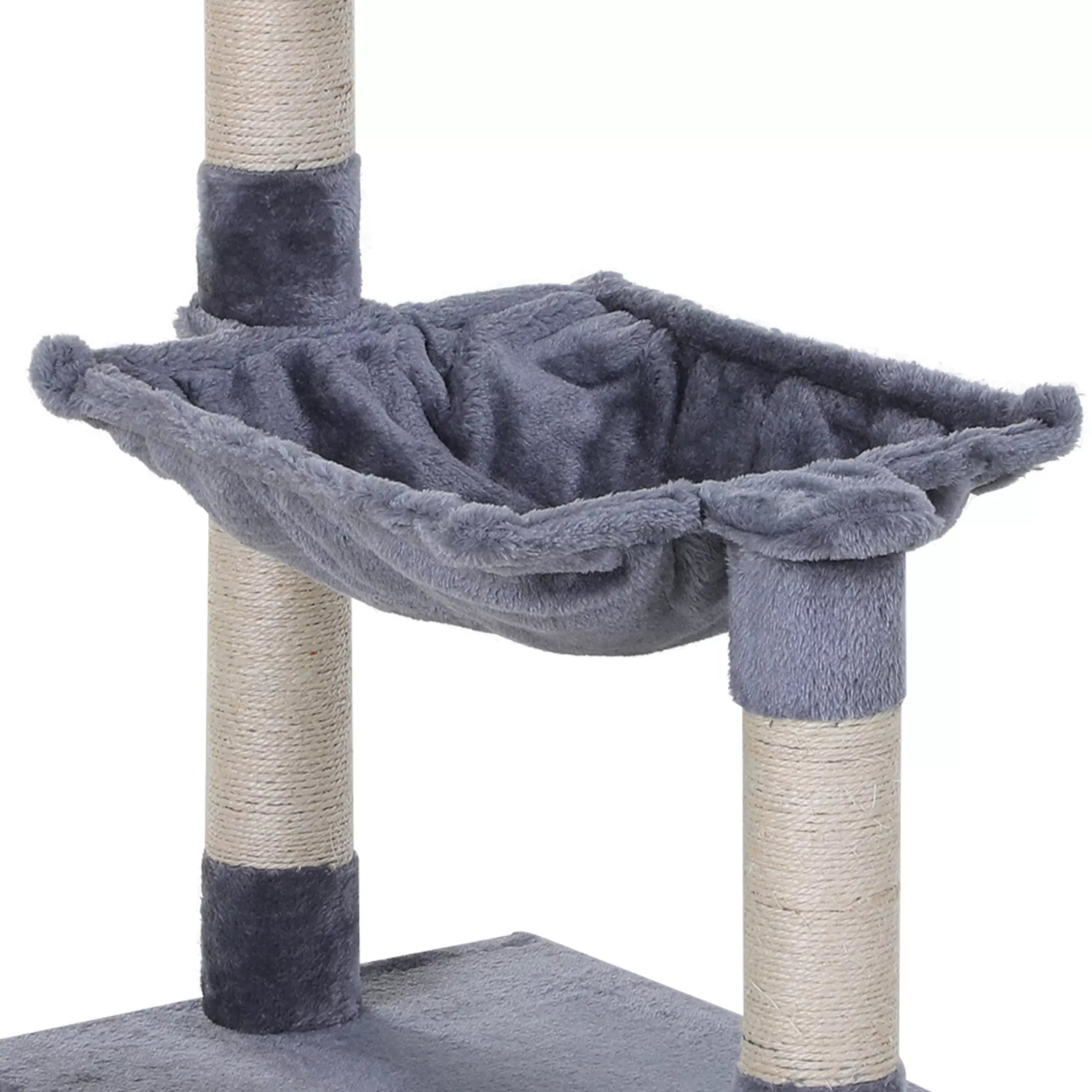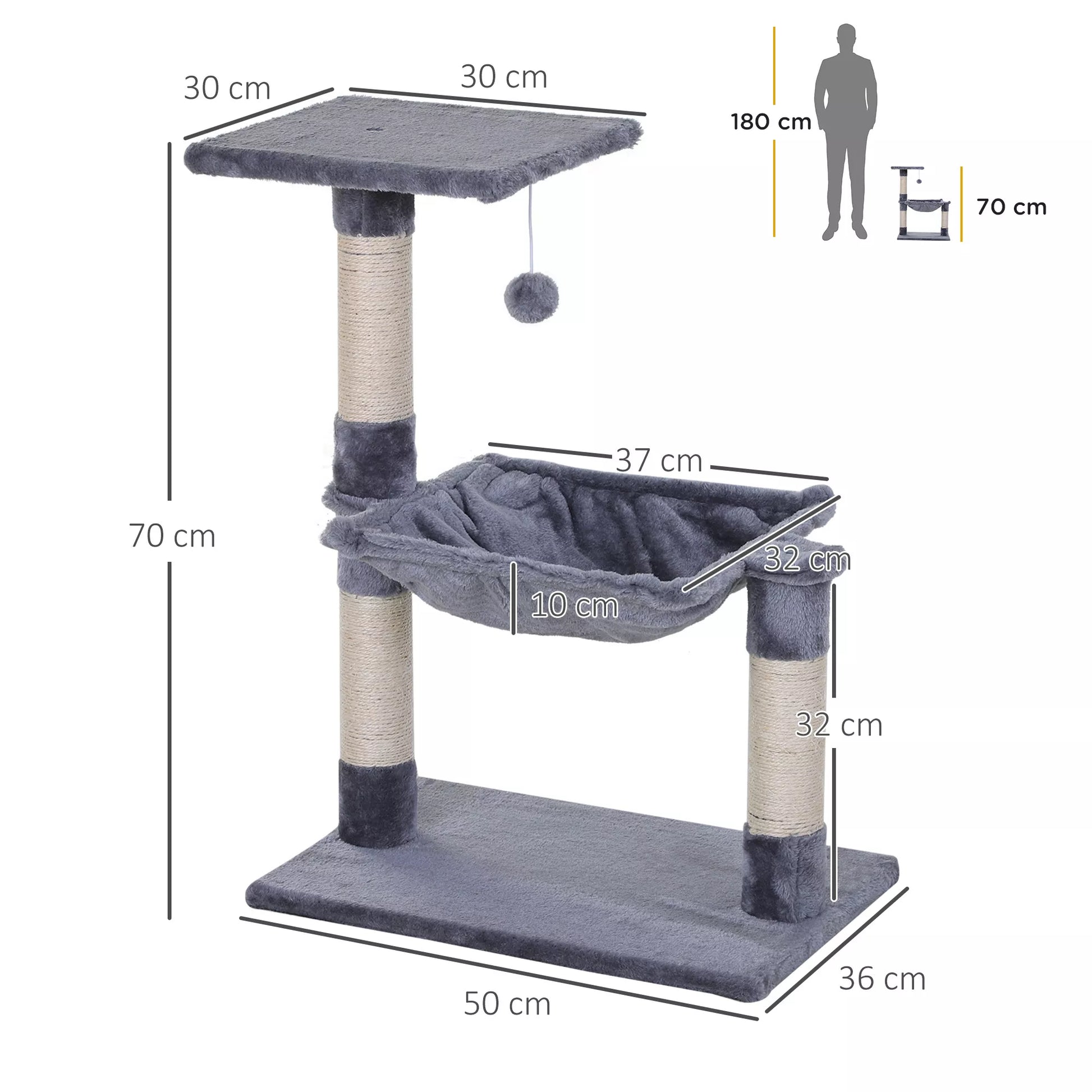 Kaķu skrāpējamais stabs ar sizala stabu, plīša šūpuļtīkls, skaidu plāksne, pelēks, 50 x 36 x 70 cm