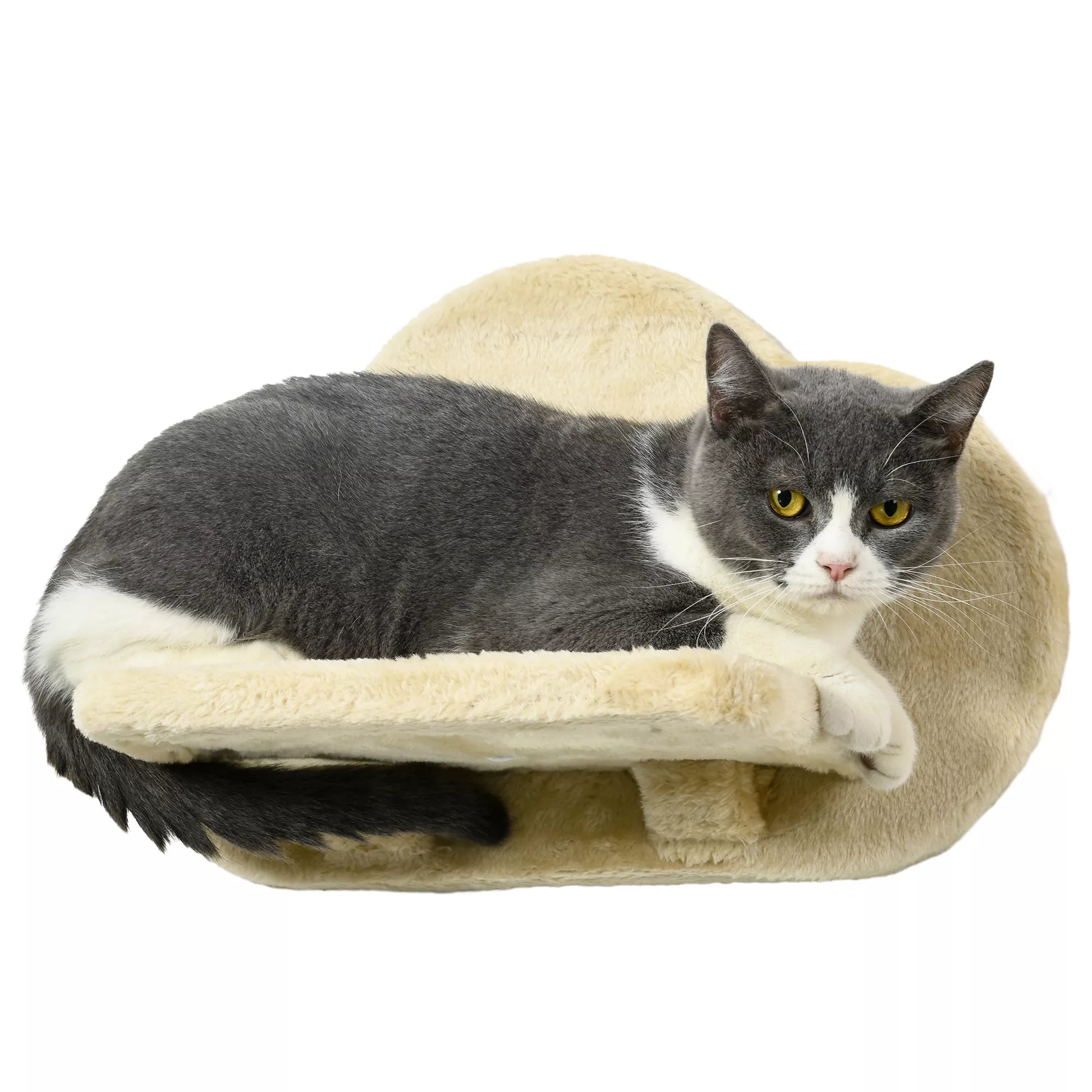 Kaķu kāpnes, 4 daļu komplekts, 3 pakāpienu kāpnes, 2 platformas, šūpuļtīkls, plīša pārvalks, bēšs