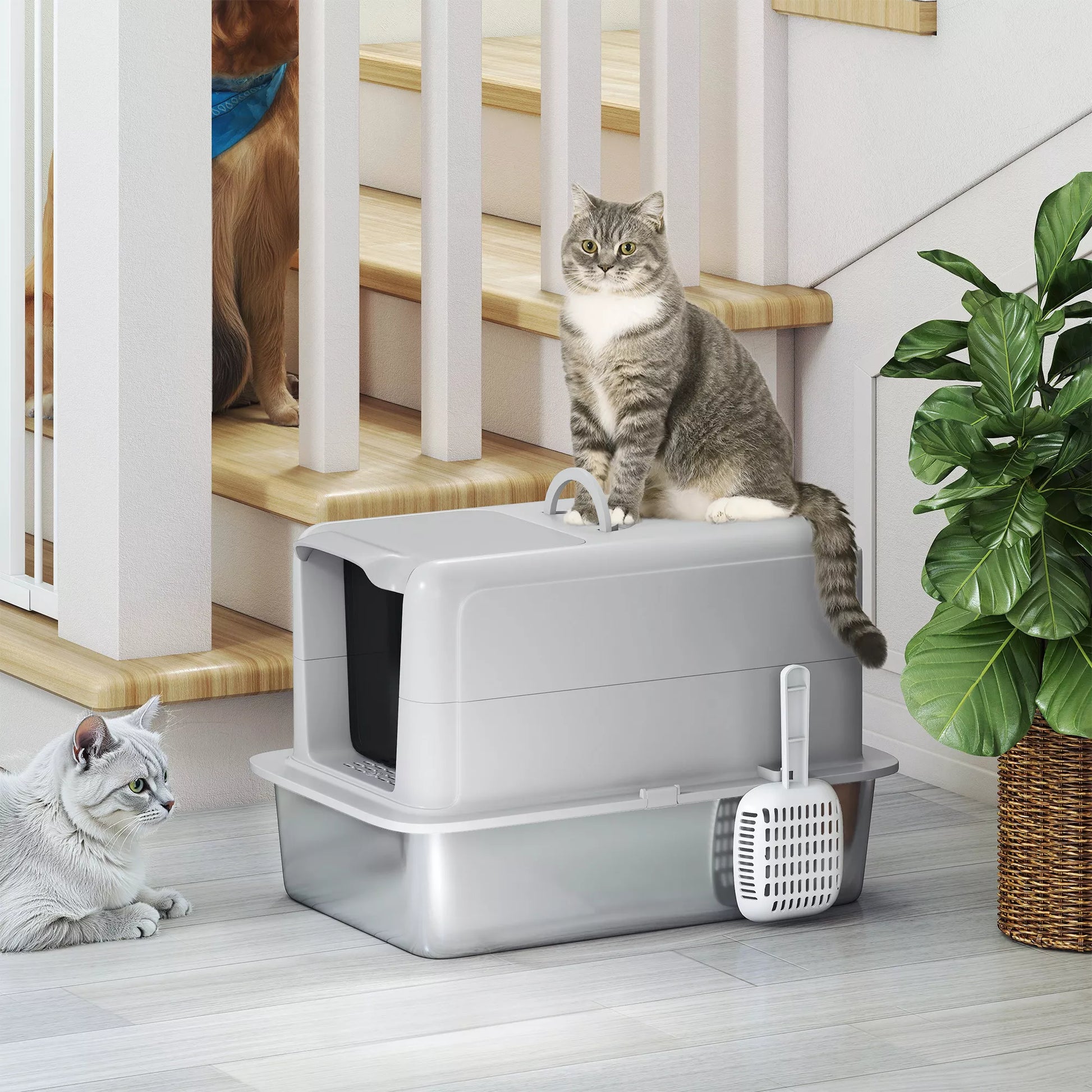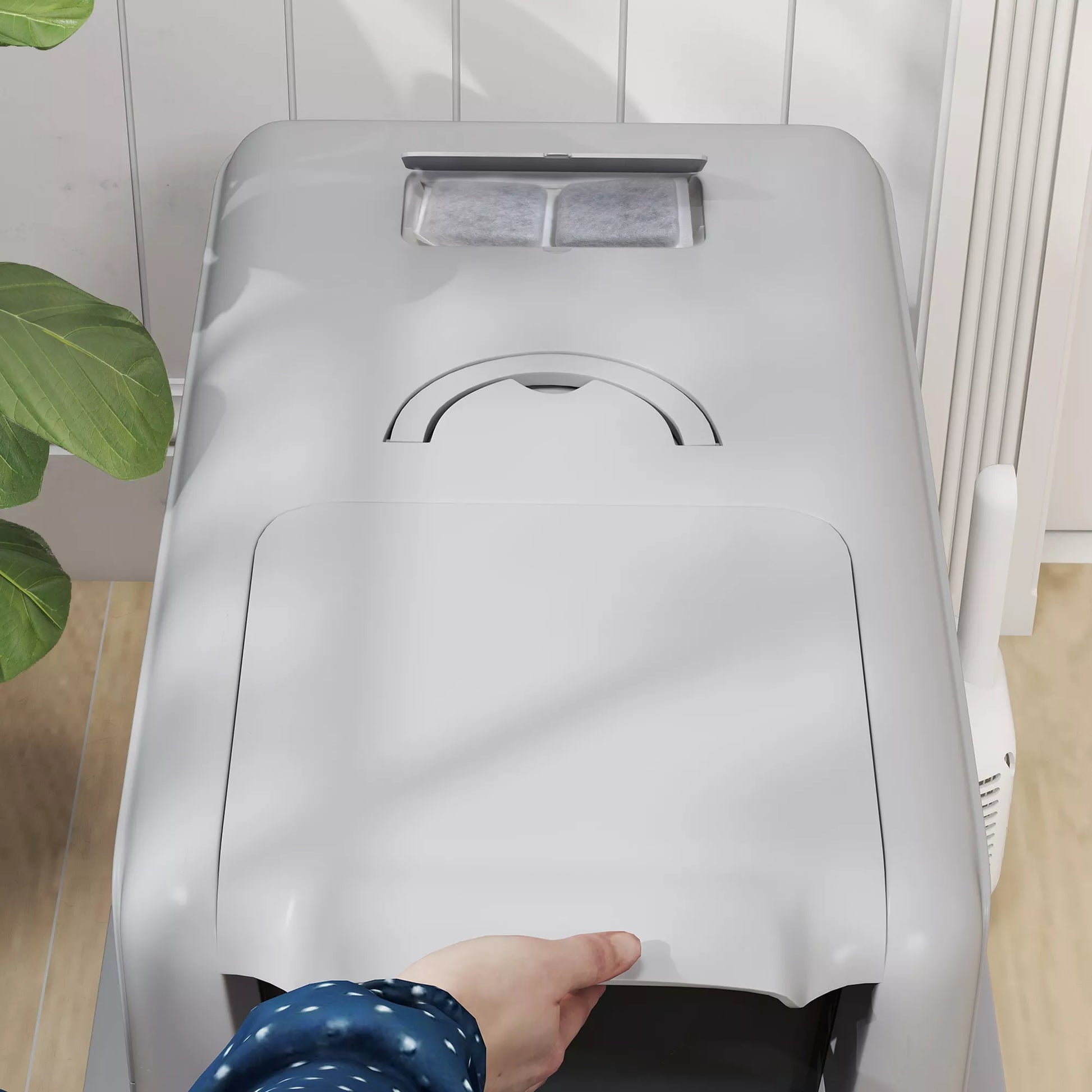 - ✔ Pusatvērta kaķu pakaišu kastes konstrukcija kaķiem, kuriem patīk atvērtas telpas