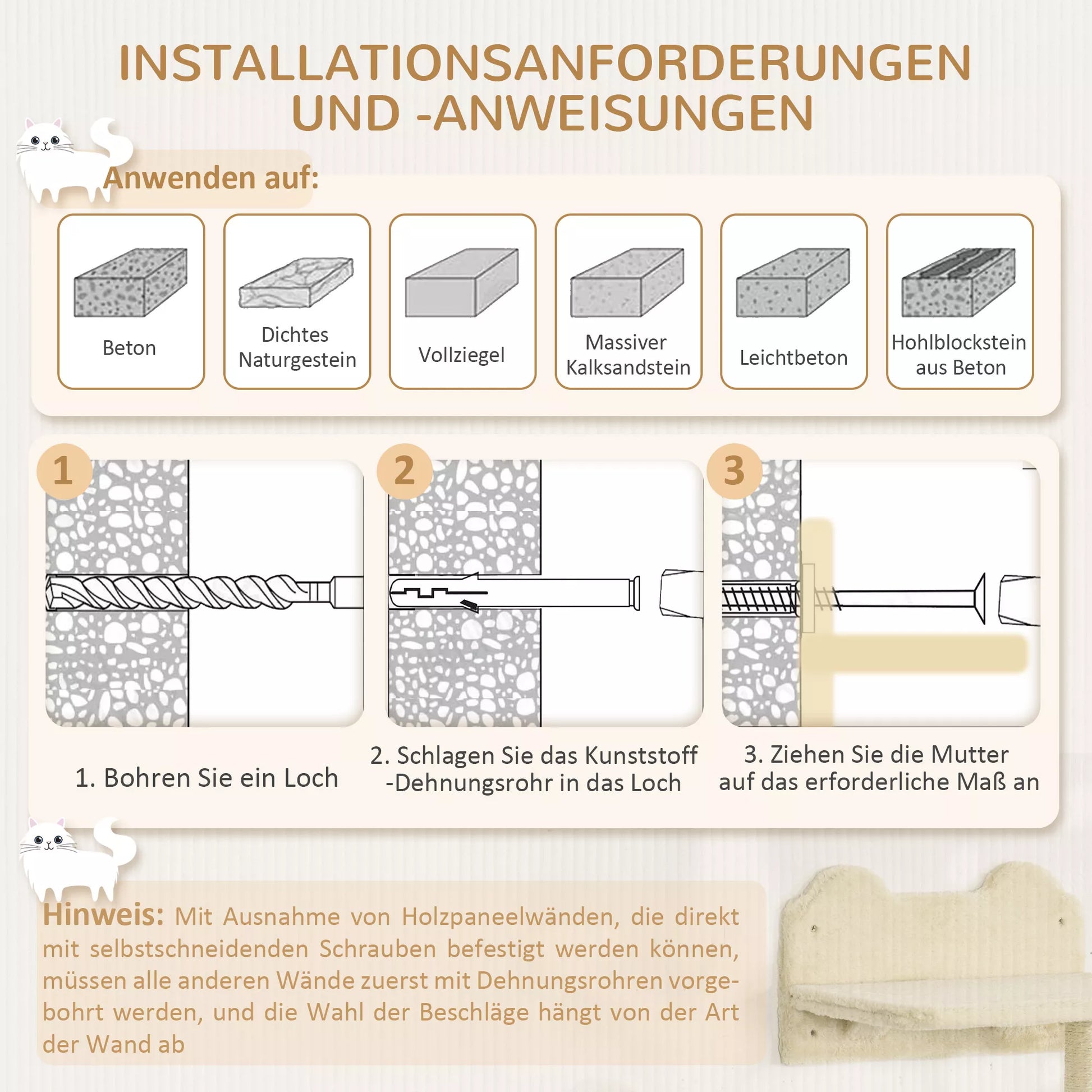 Pārvērtiet savas mājas par kaķu paradīzi ar šo četrdaļīgo kaķu kāpšanas sienas komplektu! Šis pie sienas stiprināmais skrāpējamo stabu komplekts nodrošinās jūsu mīlulim stabilu vietu, kur spēlēties, kāpt un skrāpēties. Izgatavota no izturīgas skaidu plātnes un mīksta plīša neitrālos toņos, kaķu kāpšanas siena lieliski iederas jebkurā interjerā. Radiet savam kaķim aizraujošu piedzīvojumu pasauli, vienlaikus veicinot tā veselību un labsajūtu. Obligāts pirkums katram kaķu mīļotājam!
