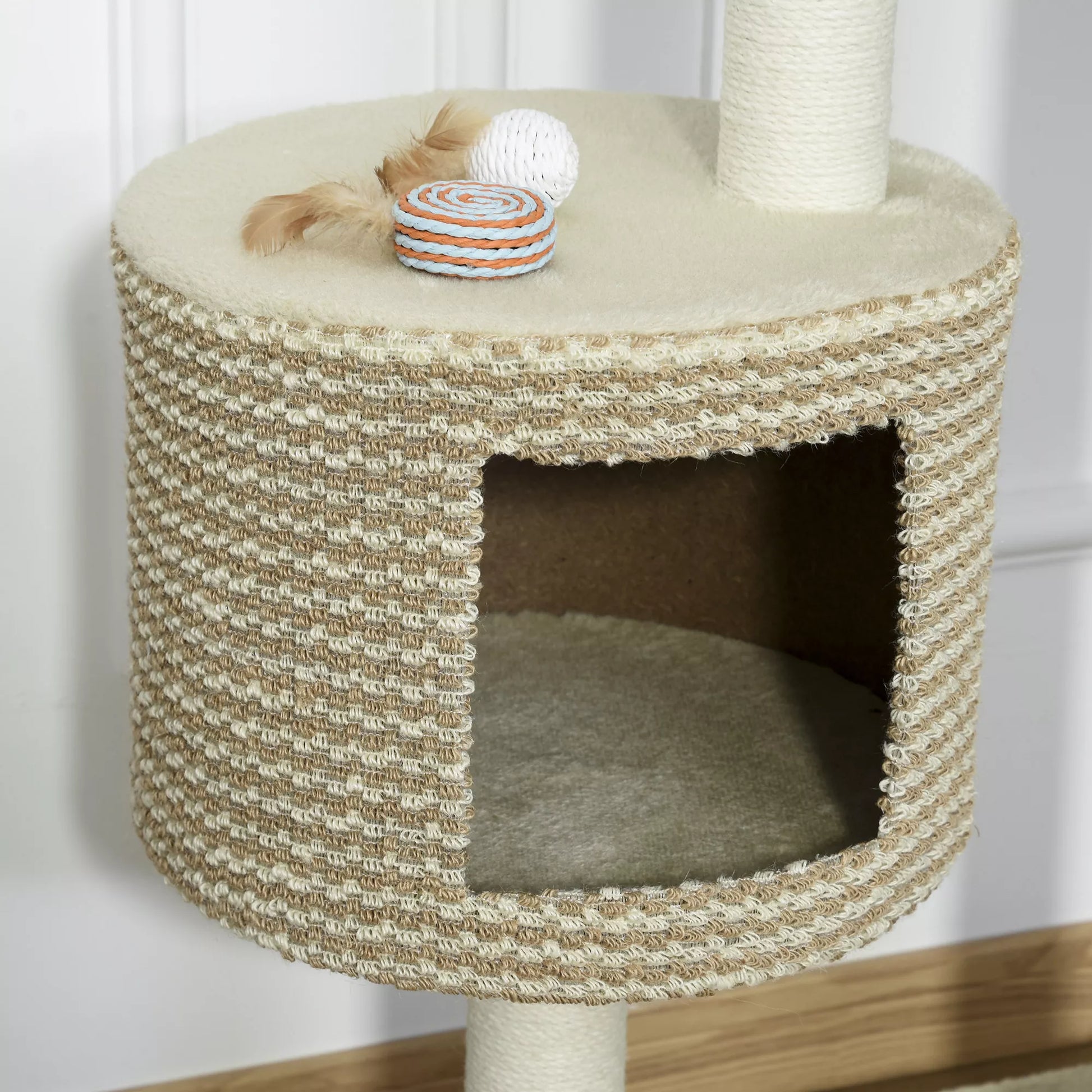 Šajā Pawhut daudzfunkcionālajā izklaides centrā ir kāpšanas koki, kas pārklāti ar dabīgu džutu, mīksta un ērta atpūtas zona un sēdvietas. Asināšanas dēļi ir noderīgi gan mājdzīvniekam, gan saimniekam, nodrošinot vietu, kur apmierināt jūsu kaķa vajadzību asināties un kāpt, vienlaikus pasargājot jūsu paklājus un mājas mēbeles no bojājumiem. Atpūtieties, spēlējieties, kustieties — jūsu kaķi var pavadīt visu dienu šajā ērtajā ierīcē jūsu pūkainajiem draugiem.