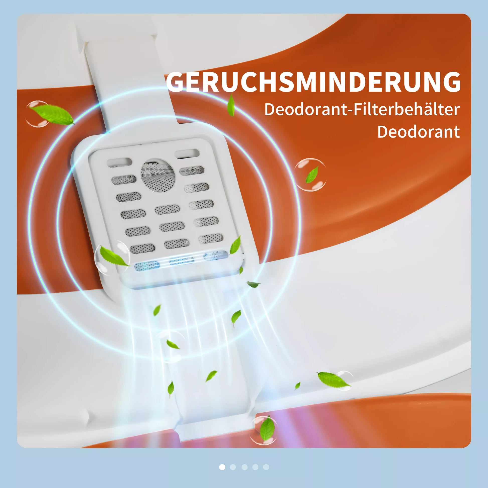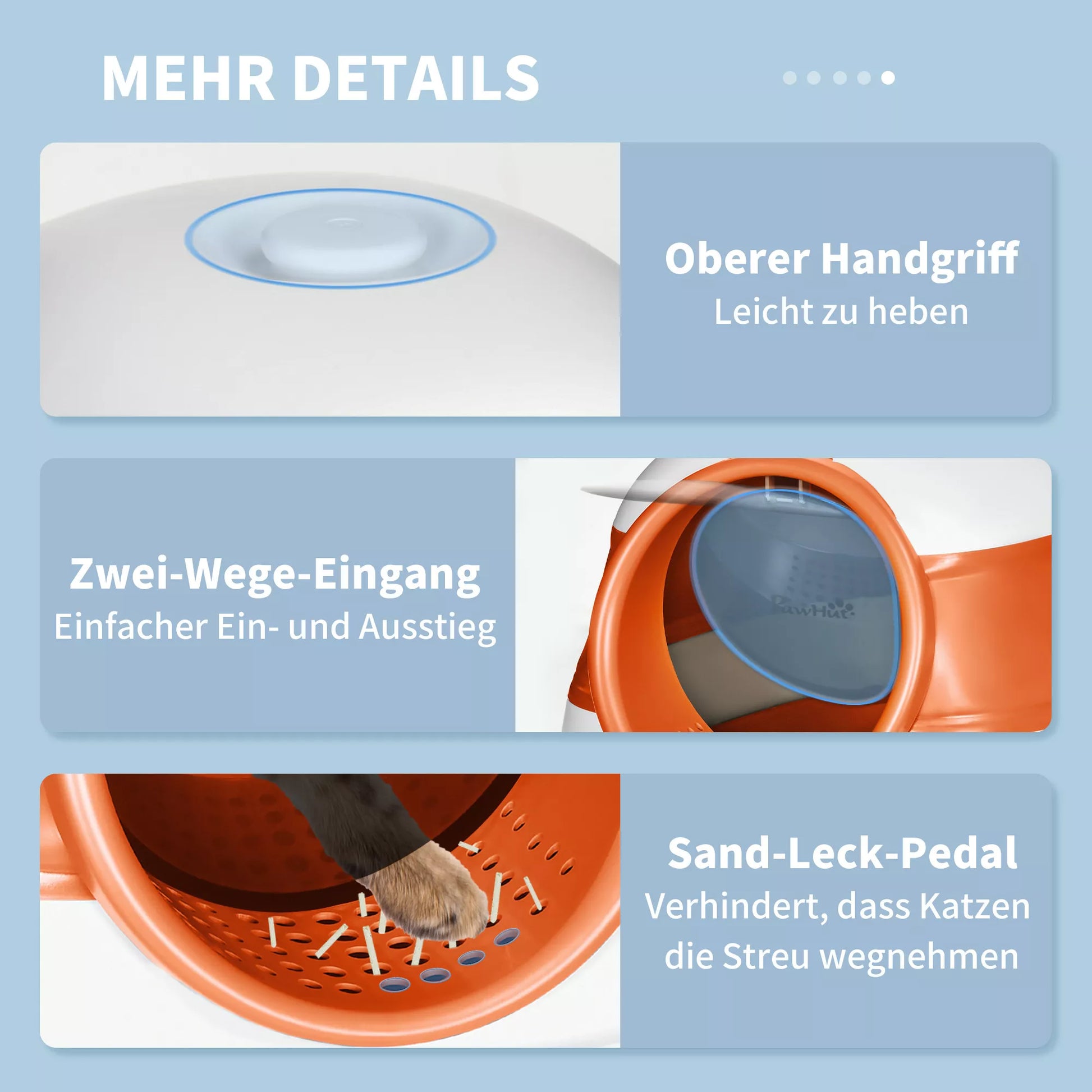 Kaķu tualete ar vāku un kaķu kaķu kausiņu, kaķiem līdz 5 kg, 52x41x38 cm, balta/oranža