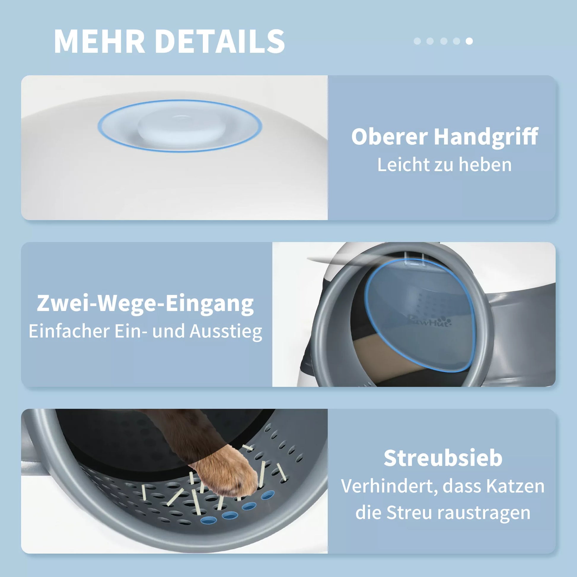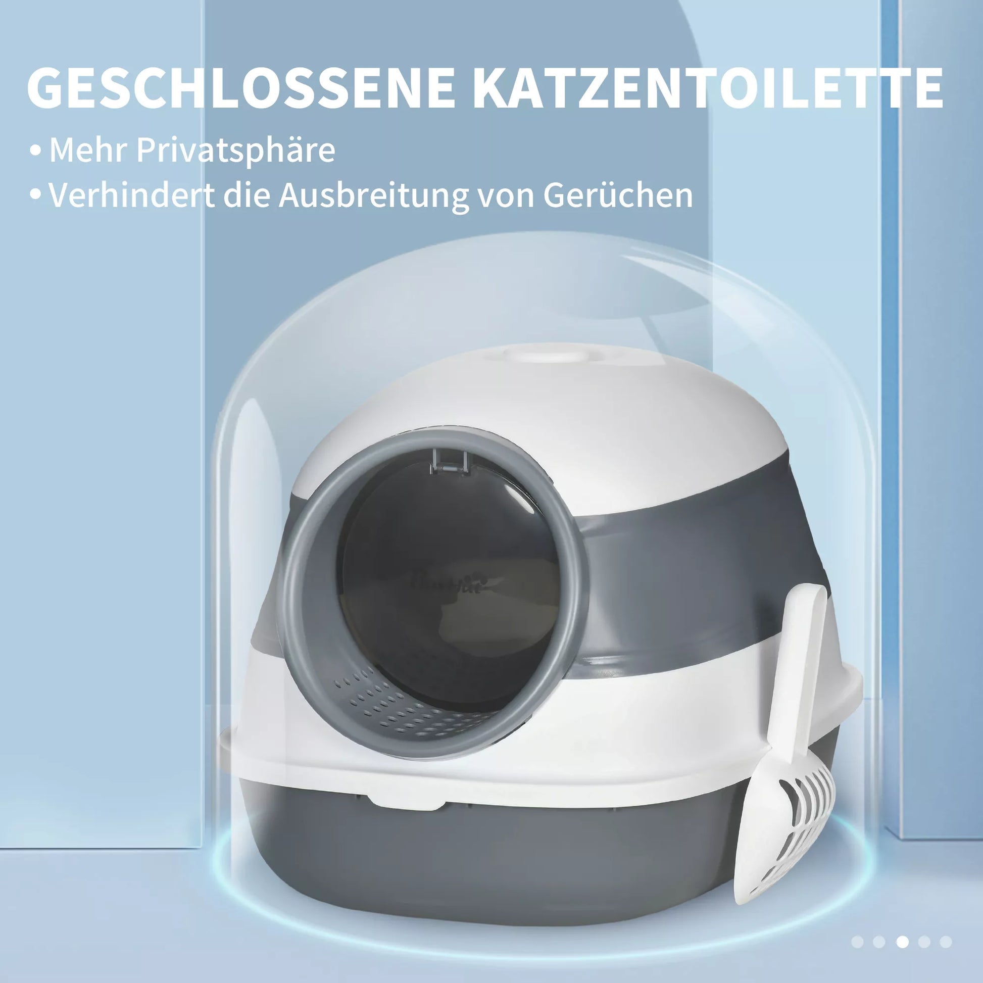 Šī kaķu tualete nodrošina jūsu kaķim pilnīgu privātumu un nodrošina, ka tas jūtas ērti. Kaķu tualetei ir liela galvenā telpa, kurā kaķis var viegli iekļūt un izkļūt caur ieejas atveri. Komplektā ietilpst praktiska kaķu tualete, ko var piestiprināt vāka ārpusē. Kaķu tualetes vāks ir veidots tā, lai to varētu viegli pacelt tīrīšanai.