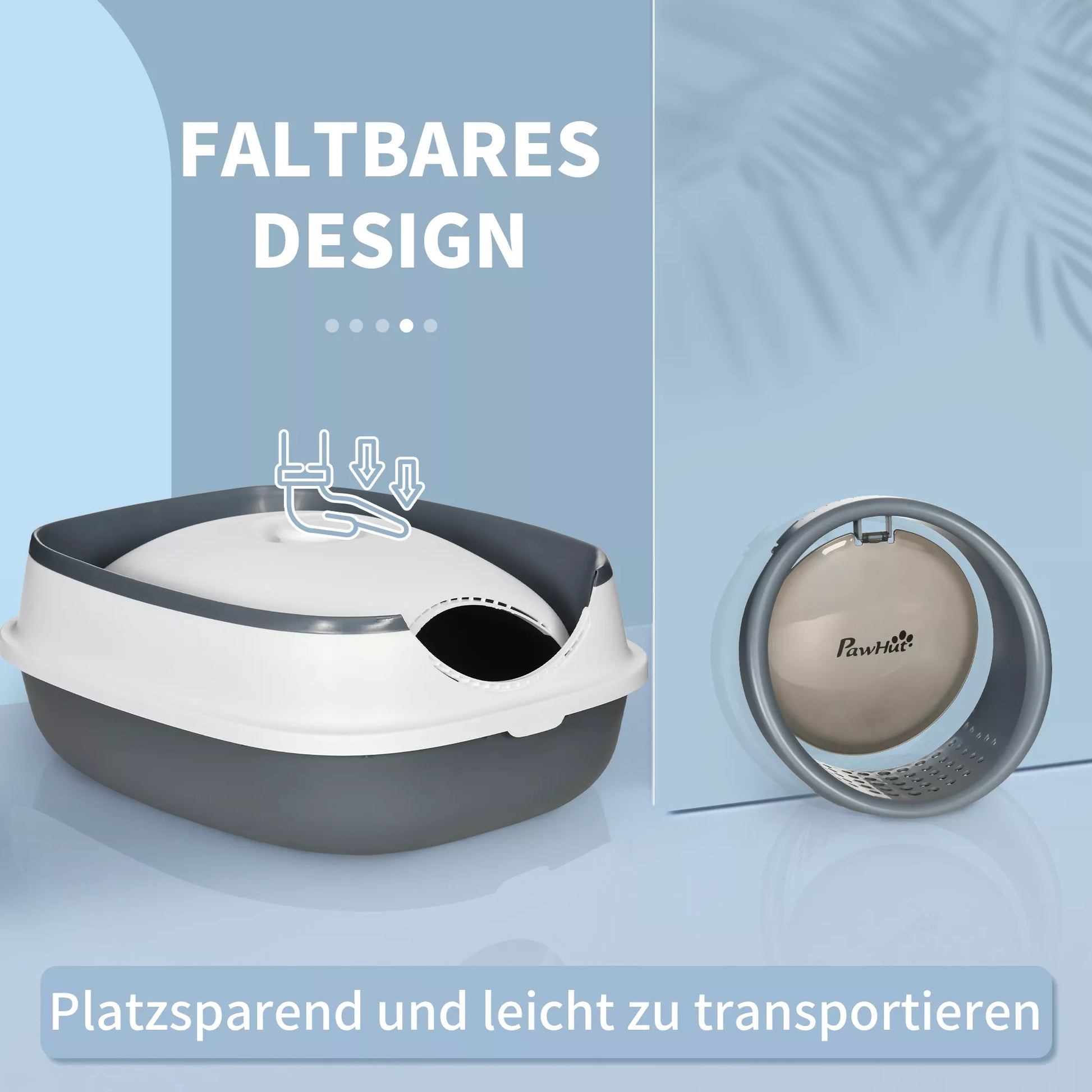Kaķu tualete ar kaķu kaķu liekšķeri, ieeja ar apakšējo režģi, noņemams vāks, balta+pelēka, 52 x 41 x 38 cm