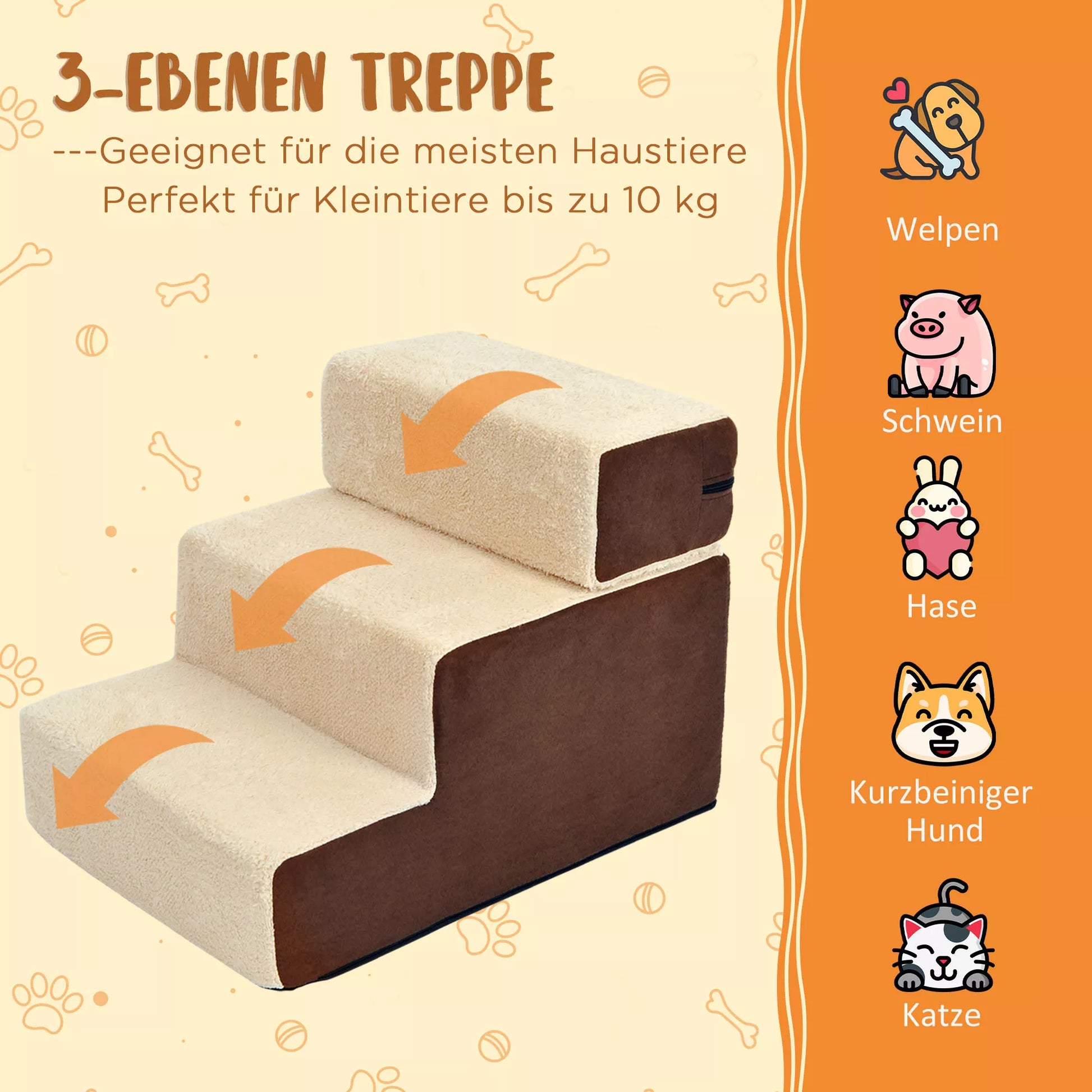 Kāpnes mājdzīvniekiem, 3 pakāpienu kāpnes suņiem un kaķiem, plīša, bēšas, 54 x 40 x 39 cm
