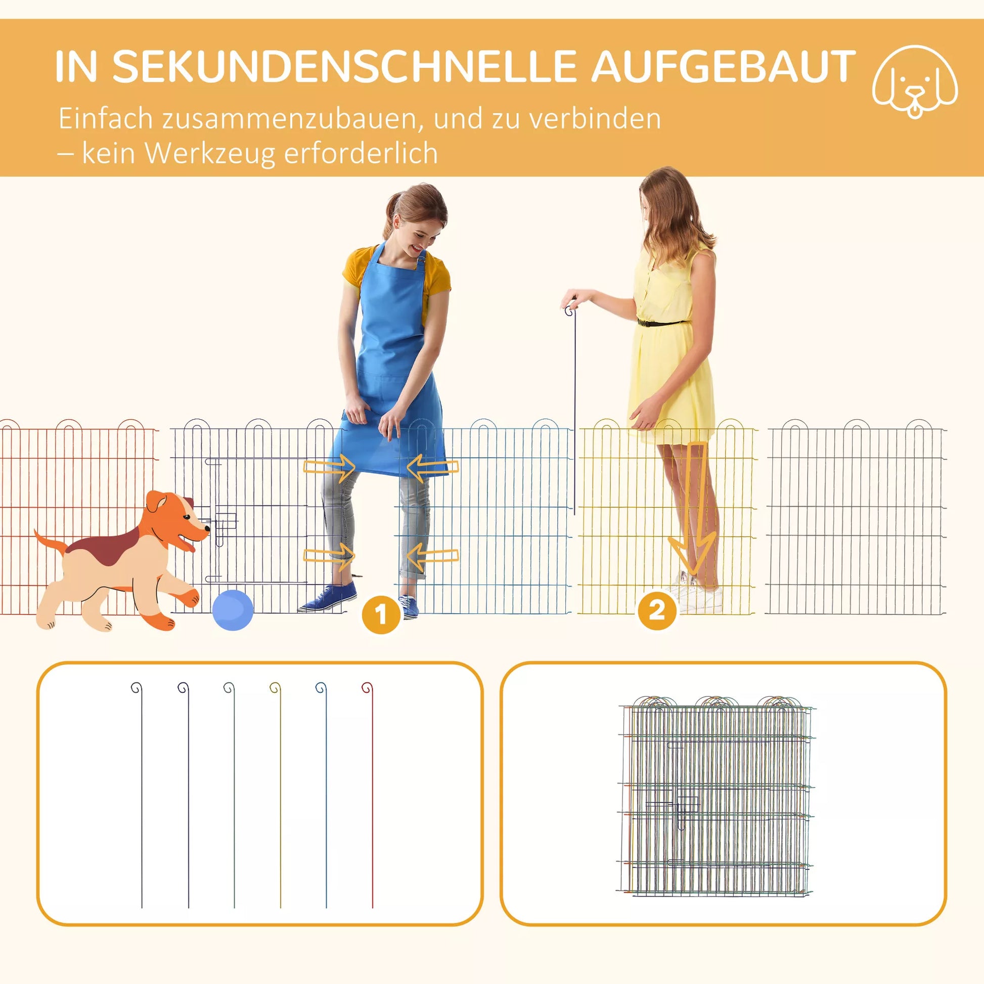 Atpūtas voljērs, kucēnu aploks, modulārs dizains, slēdzams, metāla, Ø120x60cm augstums, krāsains