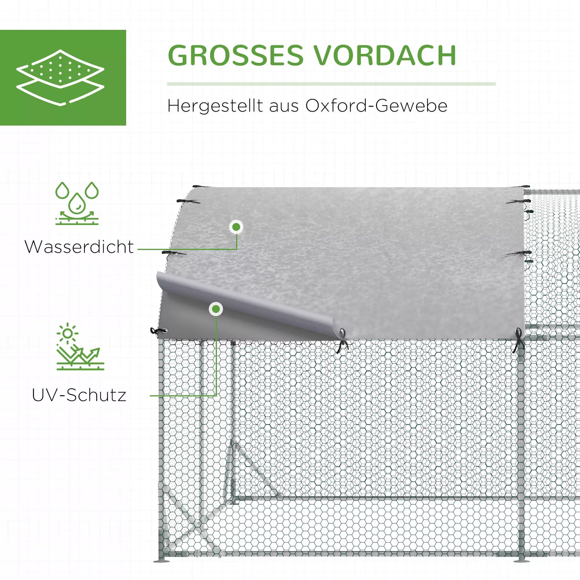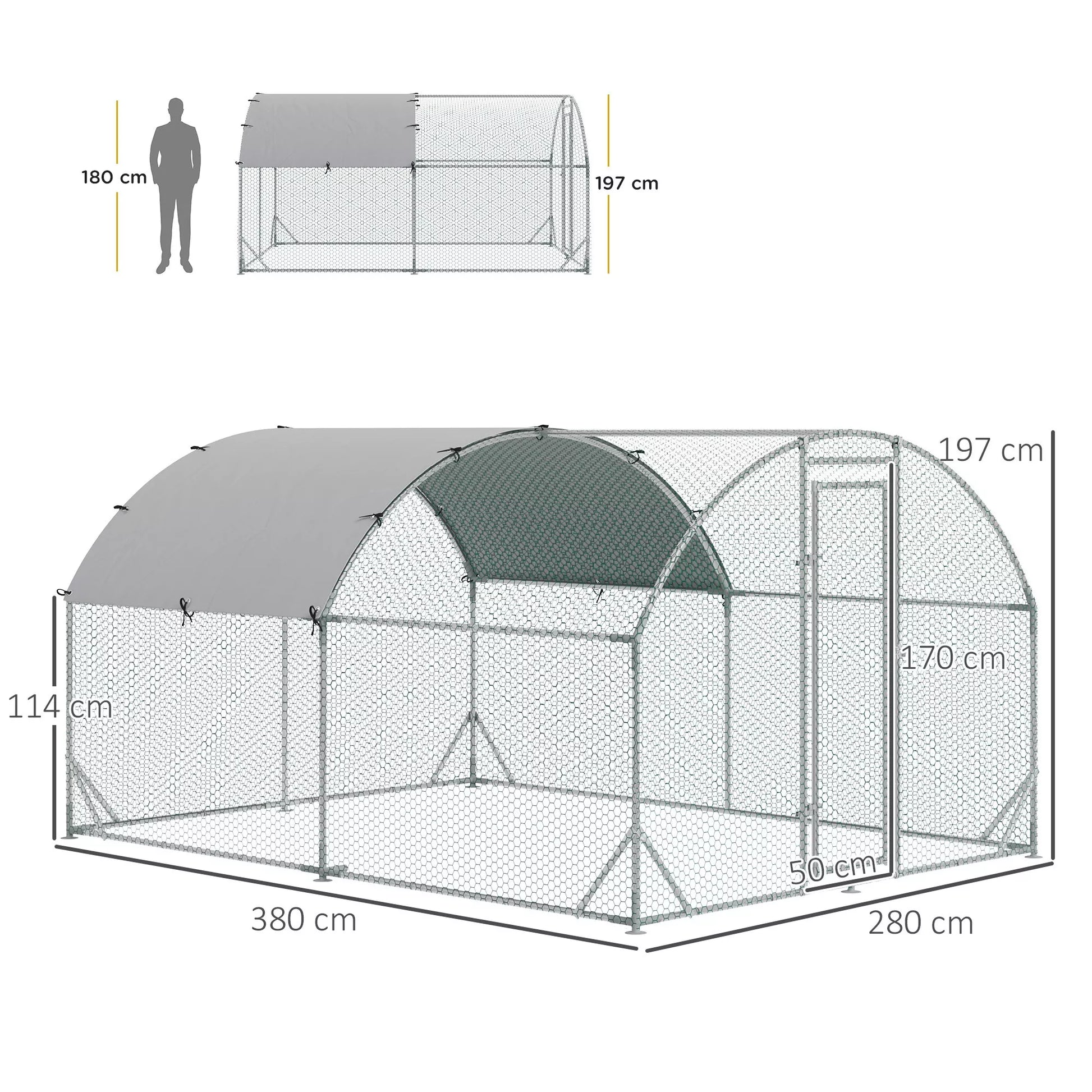 Šī aploka sešstūrainais sieta žogs nodrošina labu gaisa cirkulāciju, un jumts pasargā no karstuma un lietus. Āra platība ir pietiekami liela 6–12 vistām, dodot tām daudz brīvības pārvietoties. Kad aploka durvis ir aizvērtas, jūsu mājdzīvnieki būs drošībā.