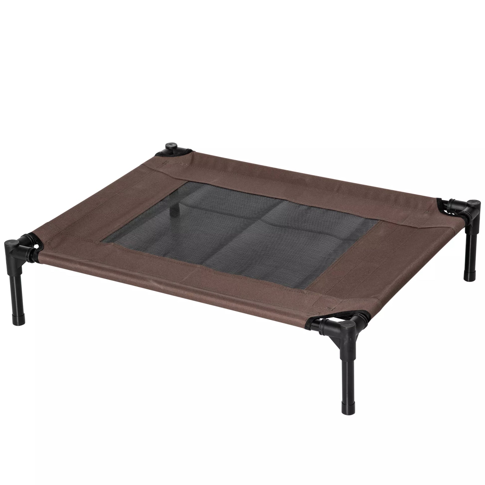 Āra suņu gulta, paaugstināta suņu gulta vidējiem un lieliem suņiem, stabila mājdzīvnieku gulta ar mazgājamu sietu, kaķu gulta, mājdzīvnieku gulta, guļvieta ārā, kempingam, 76 x 61 x 18 cm, brūna