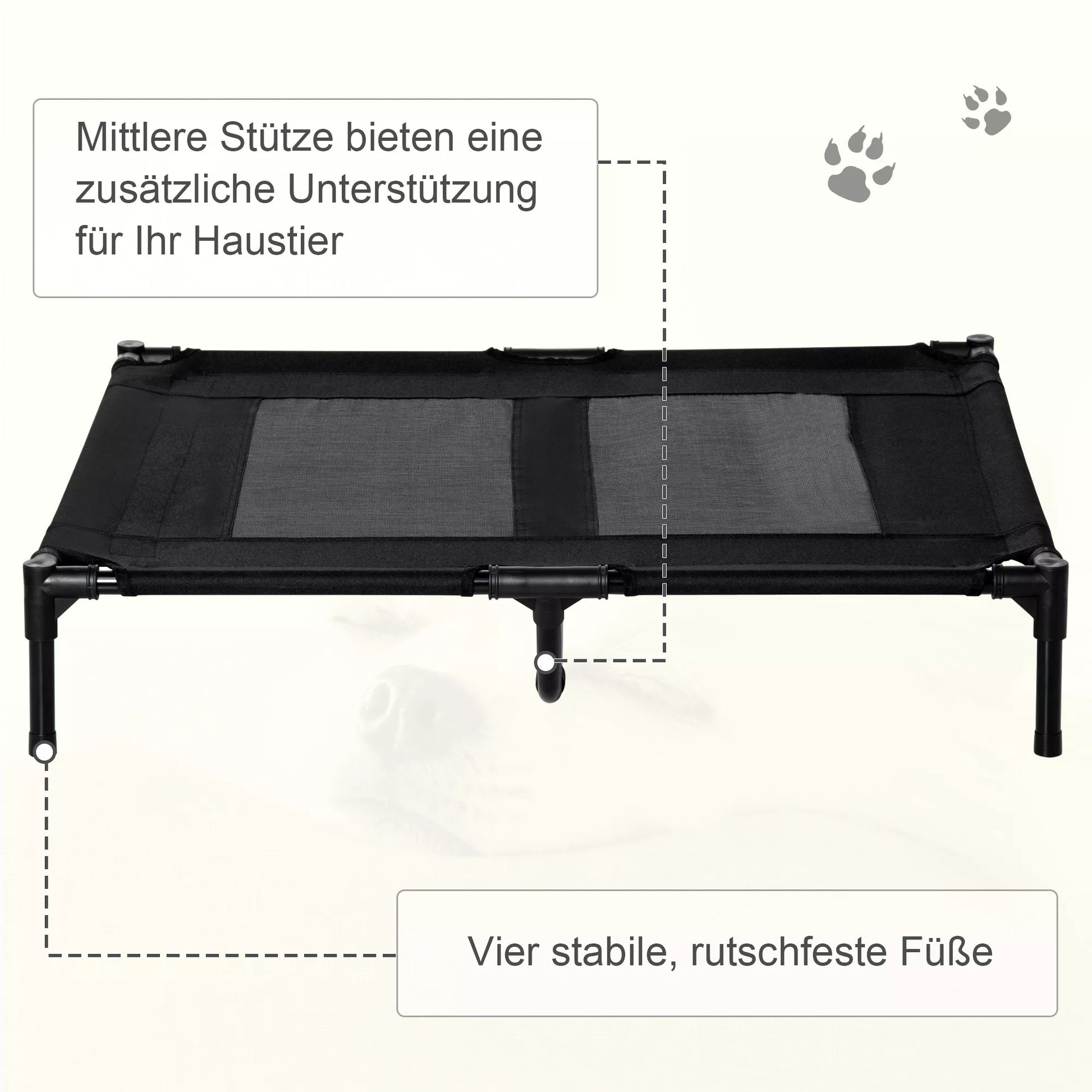 - ✔ Paaugstināta suņu gulta aizsargā jūsu mīluli no netīrumiem un kukaiņiem