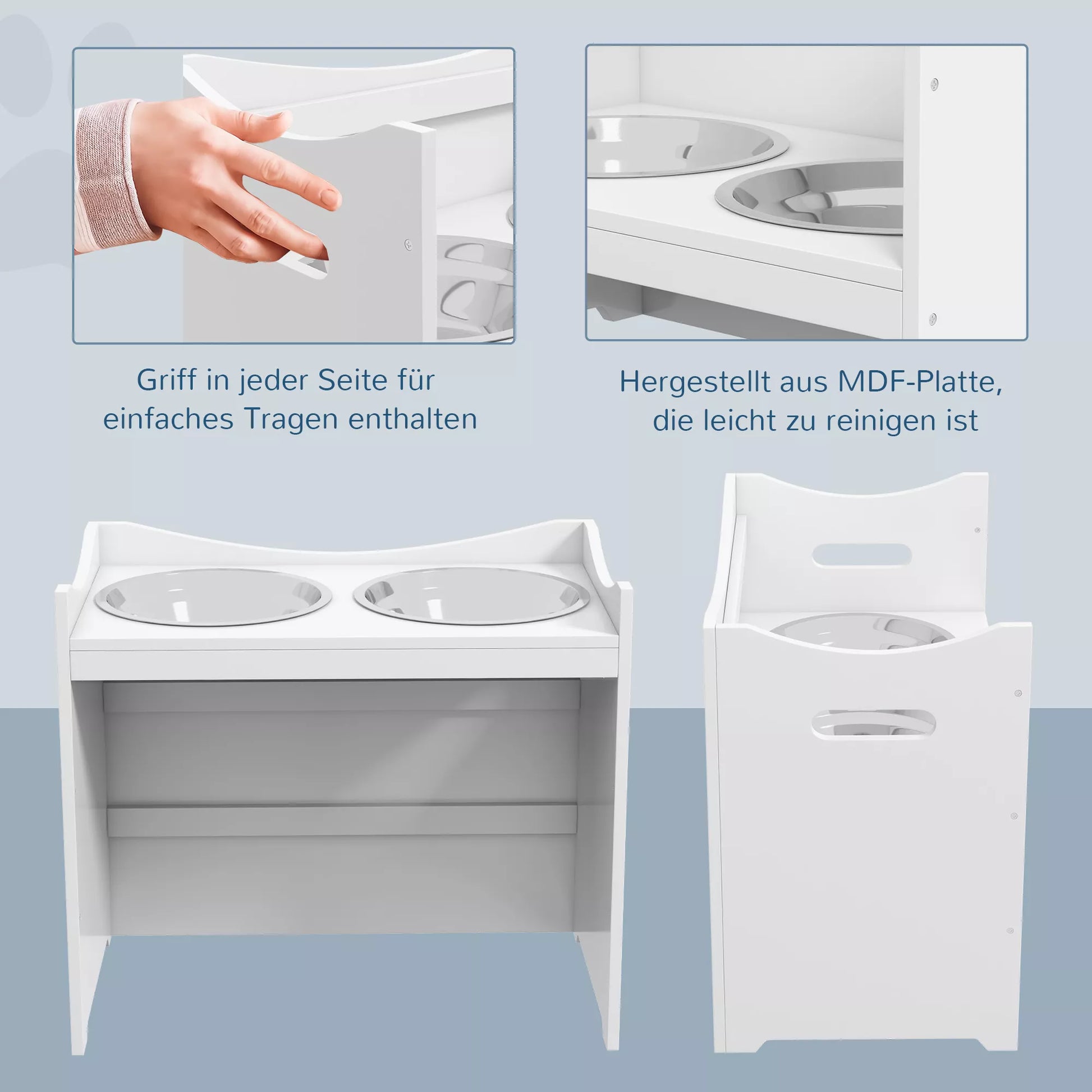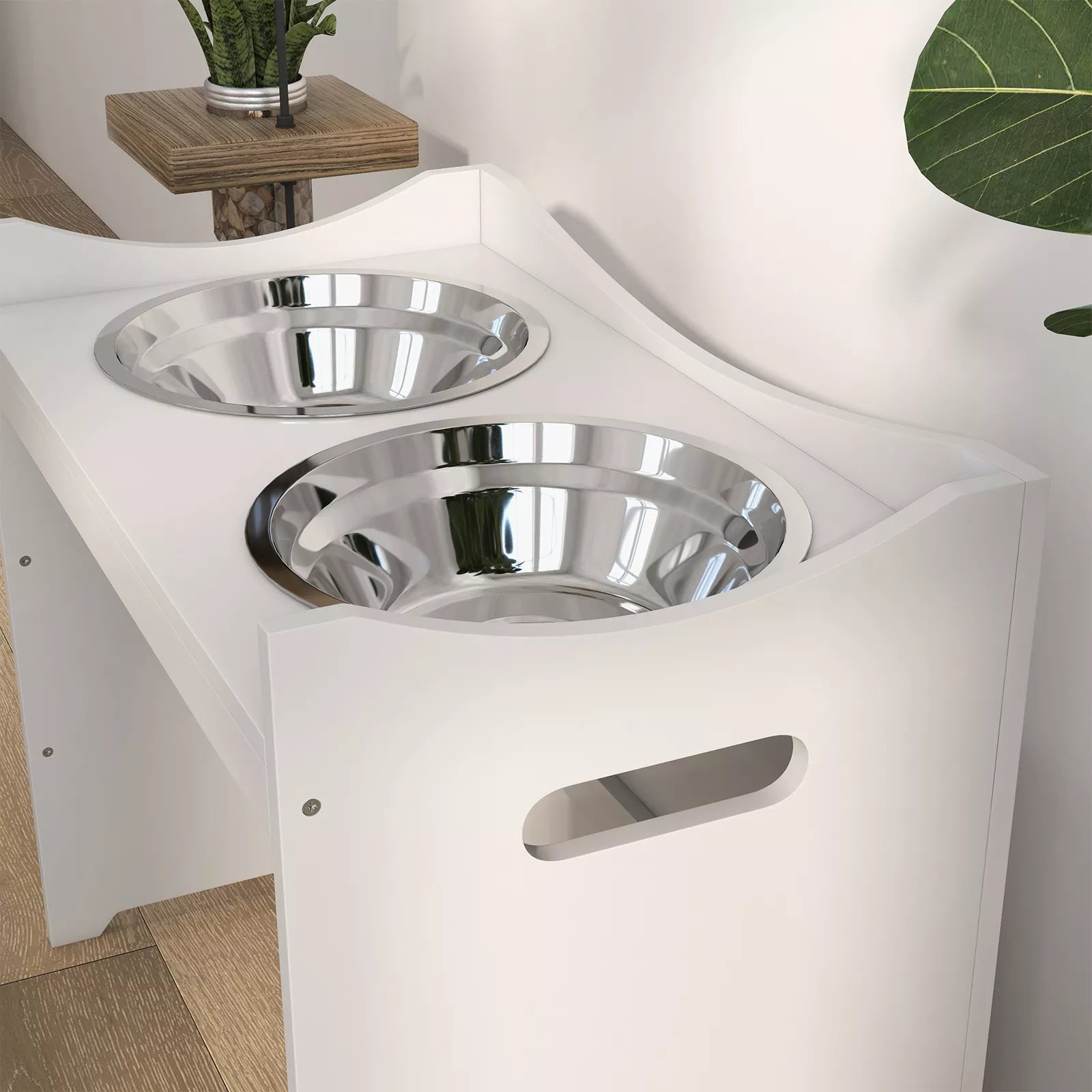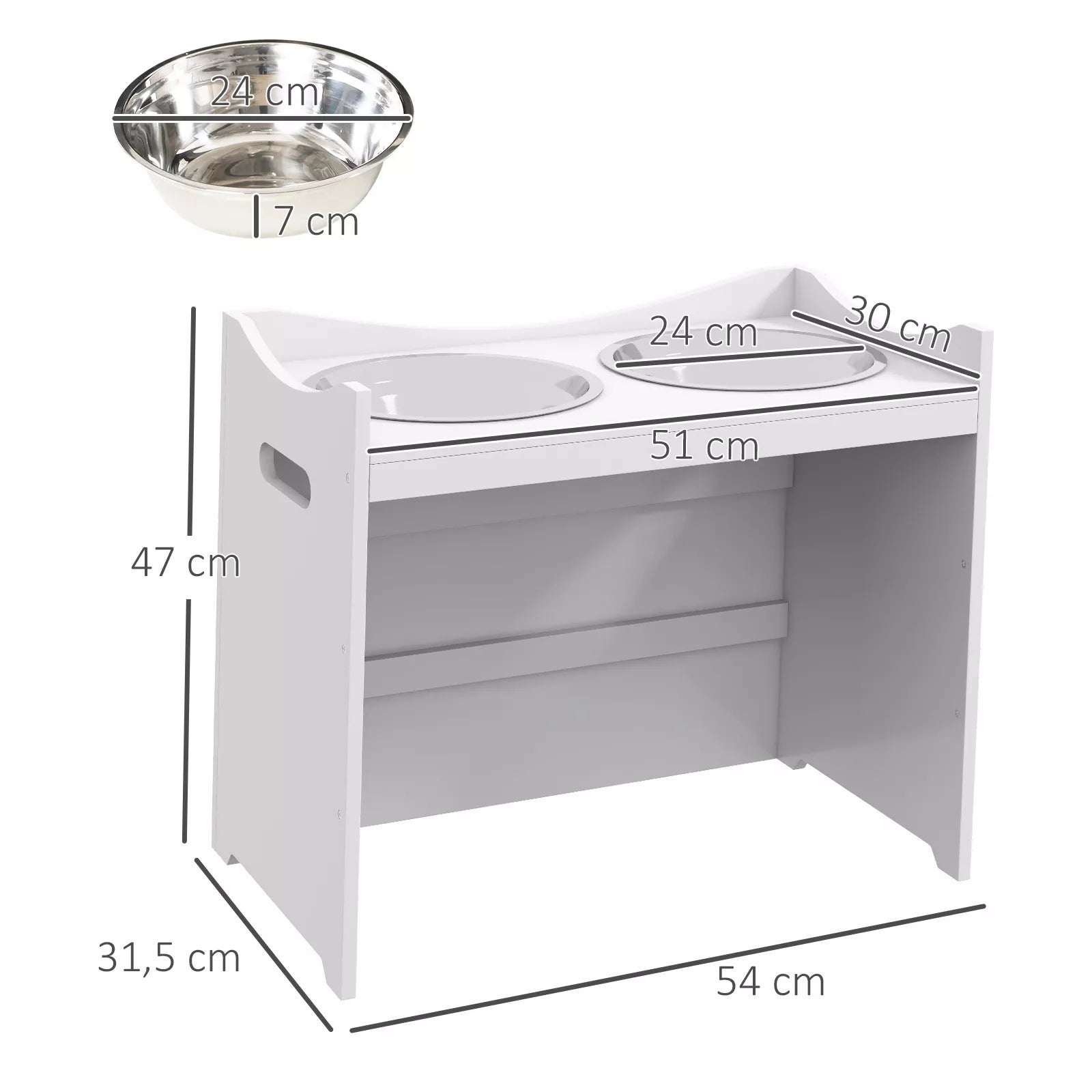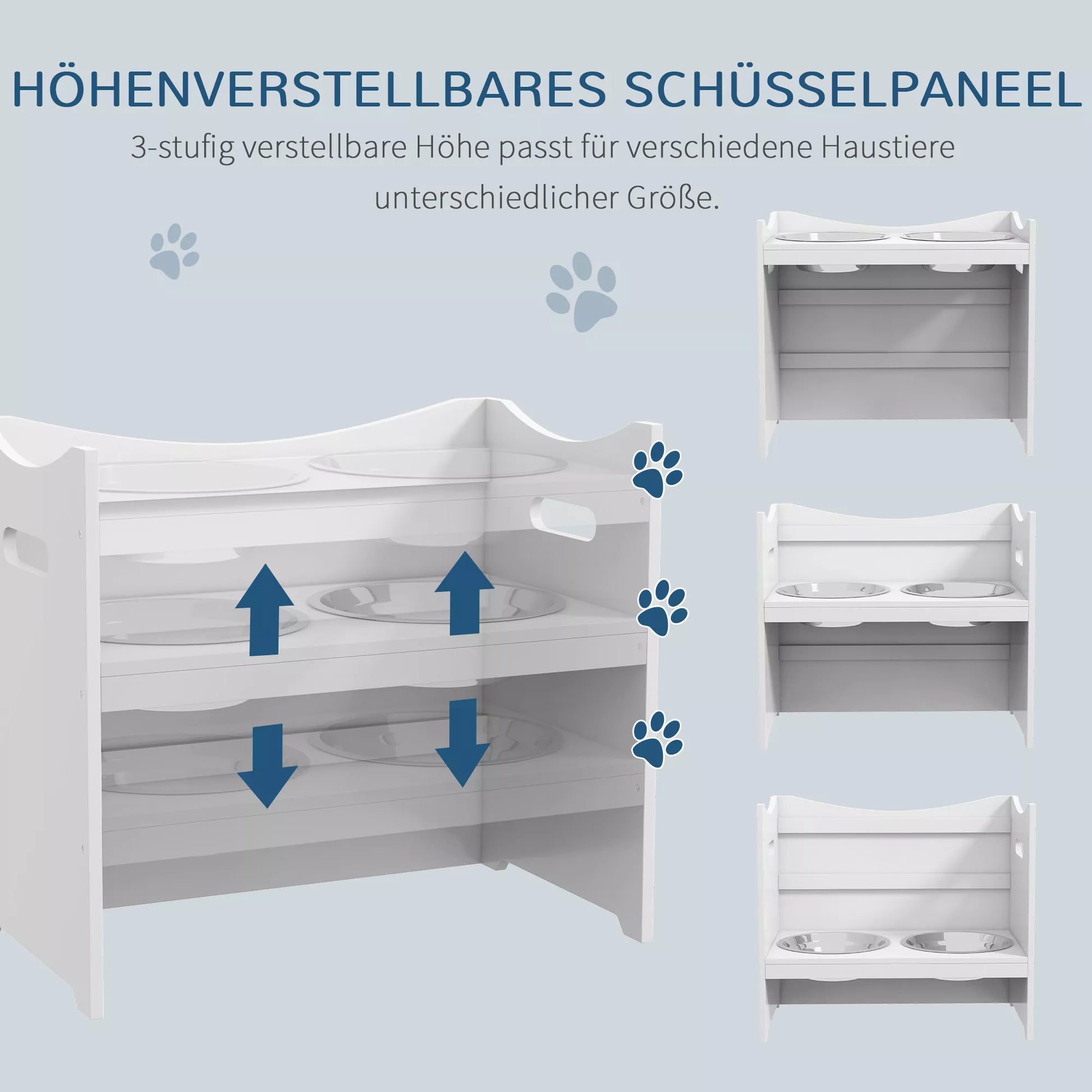 Suņu barības stacija, 2 nerūsējošā tērauda bļodas, regulējams augstums, 54x31,5x47cm, balta