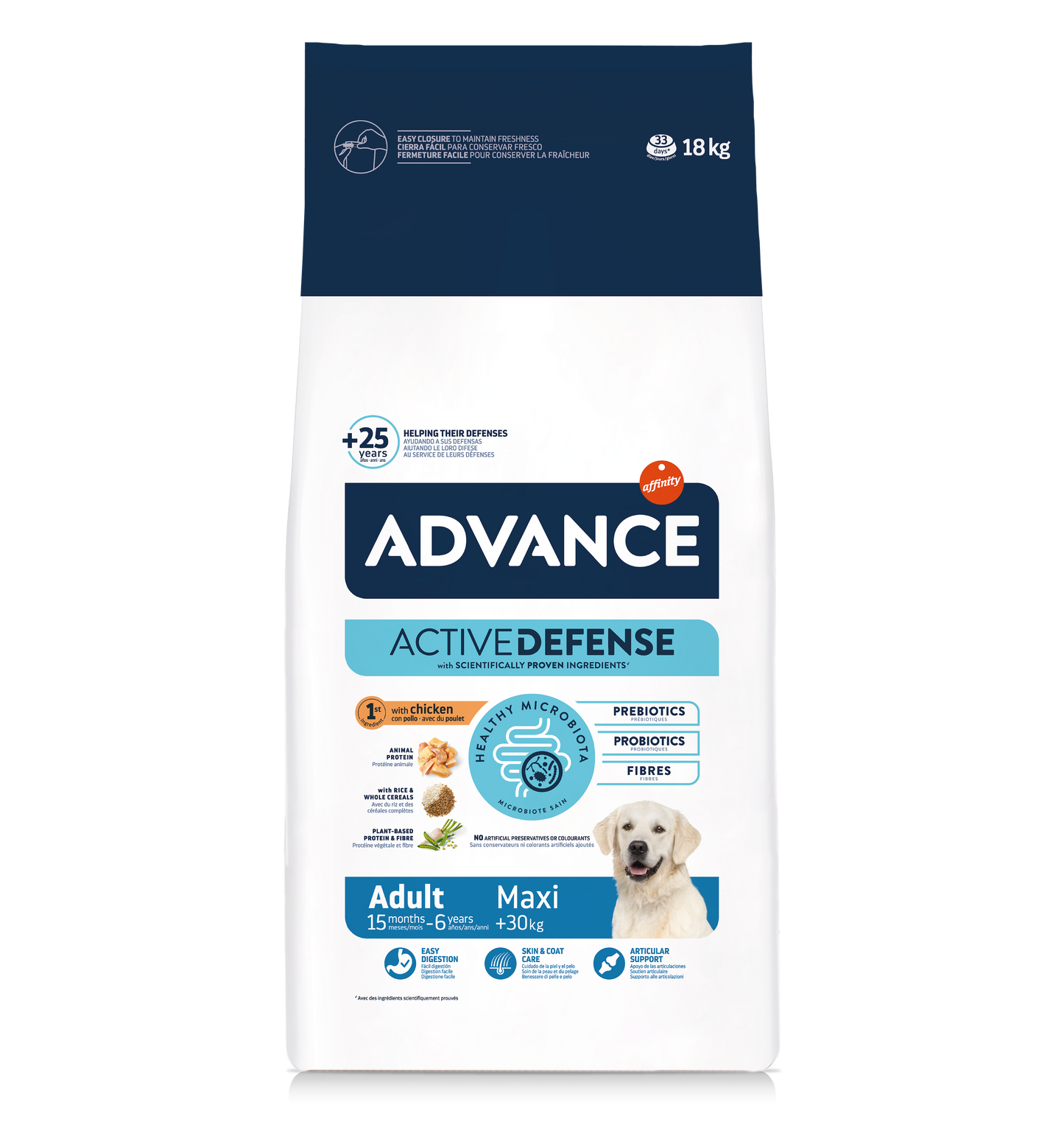 Advance Maxi Adult sausā barība lielo šķirņu pieaugušiem suņiem ar vistu un rīsiem 18 kg