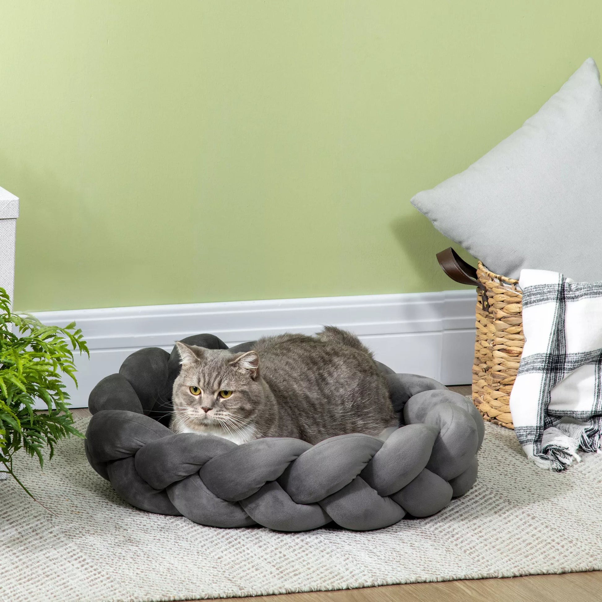 Mājdzīvnieku gulta ar spilvenu, kaķu gulta, suņu gulta, mazgājama, 55 cm x 55 cm x 14 cm, pelēka