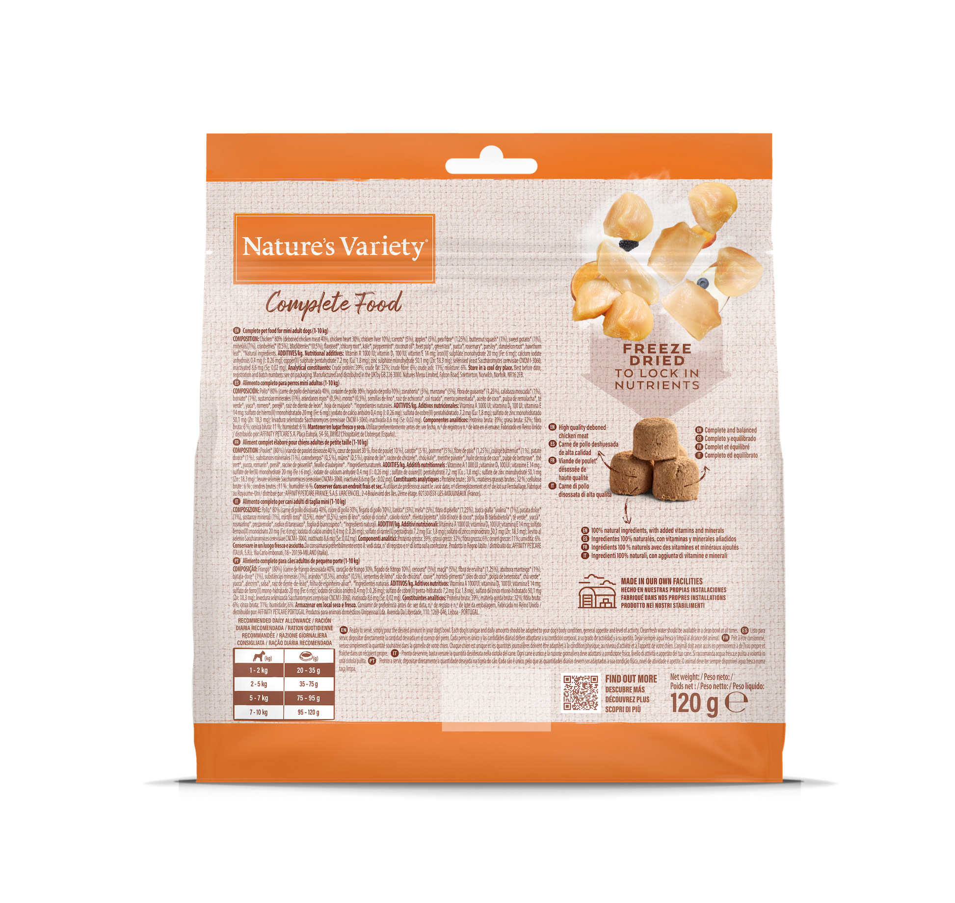 Nature's Variety liofilizēta barība mazo šķirņu suņiem ar vistu.