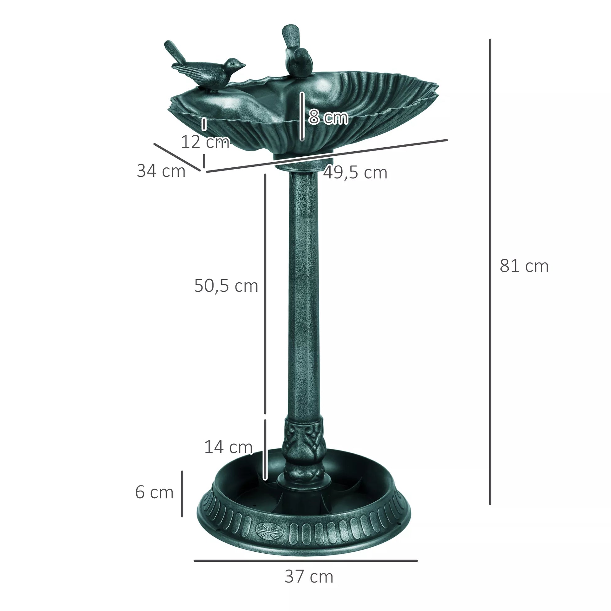 Mūsų plastikinė paukščių vonia sodui, klasikinio dizaino ir patogi konstrukcijos, visus metus paverčia jūsų sodą įvairių paukščių rūšių susitikimo vieta. Ši stovinti paukščių vonia turi du dubenėlius pašarui ir vandeniui. Paukščių vonia su dubenėlio formos vonia ir dviem paukščių figūromis suteikia jūsų lauko erdvei elegantišką akcentą su savo atspariai oro sąlygoms, šalčiui ir senoviniu metalo išvaizda.
