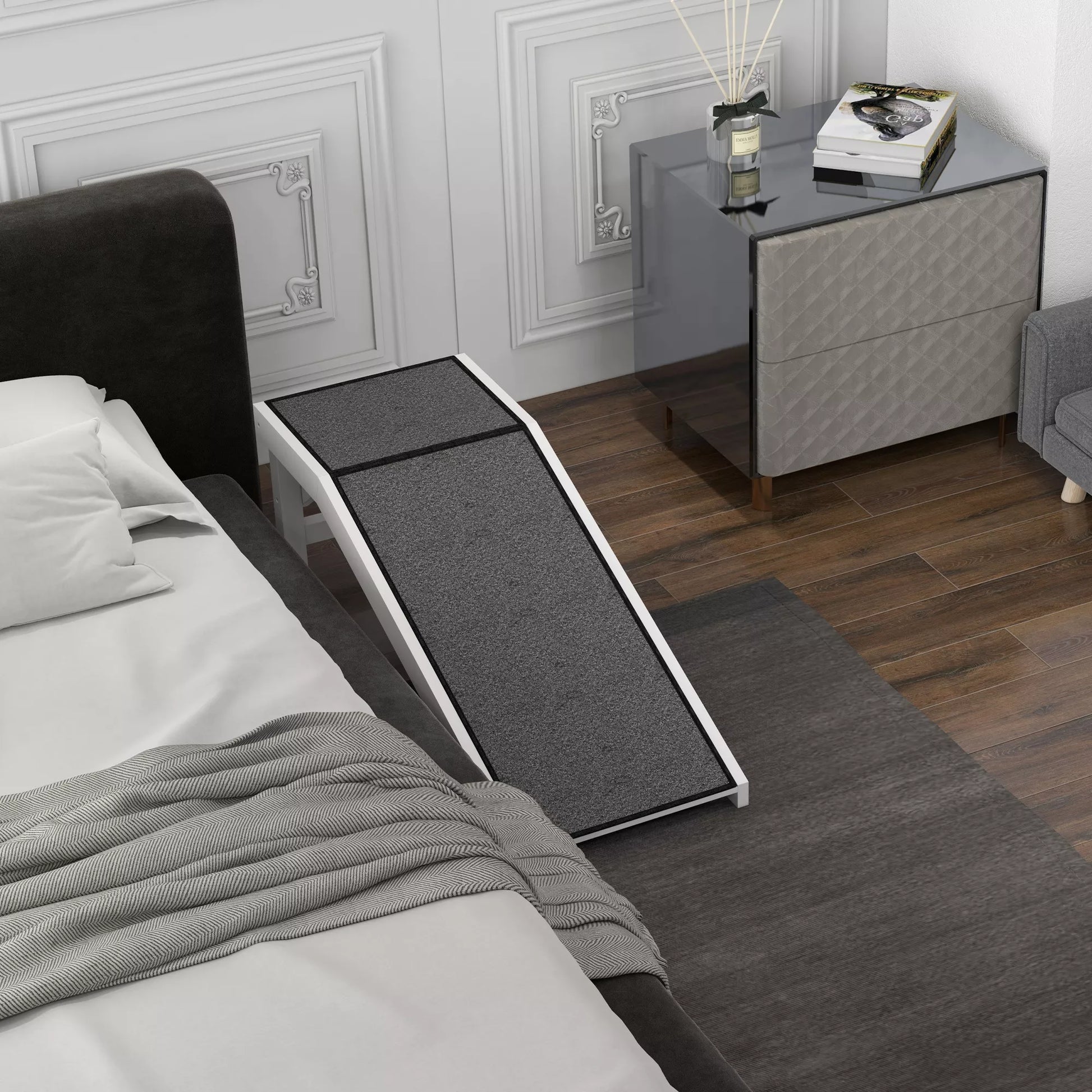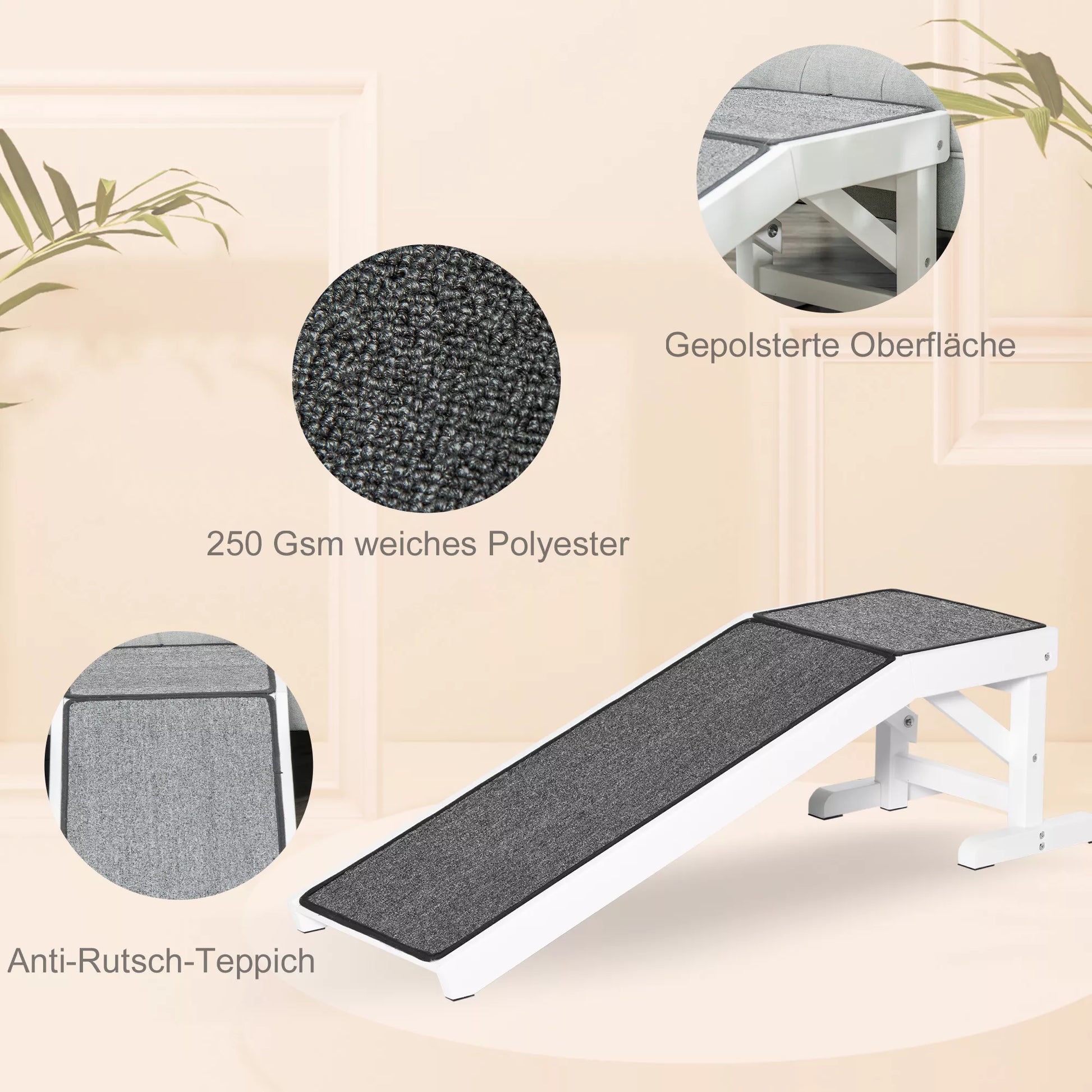 PawHut dzīvnieku rampa ar neslīdošu paklāju, 125 x 40 x 35,5 cm, priedes koksne