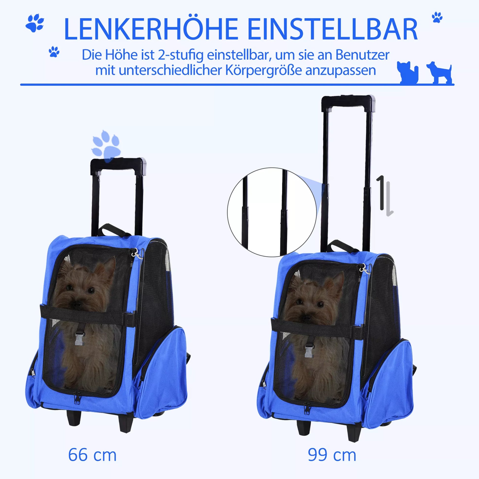 PawHut suņu transportēšanas soma, mugursoma mājdzīvniekiem, 2-in-1 dizains, ievelkams rokturis, sānu kabatas, zila, 42 x 25 x 55 cm