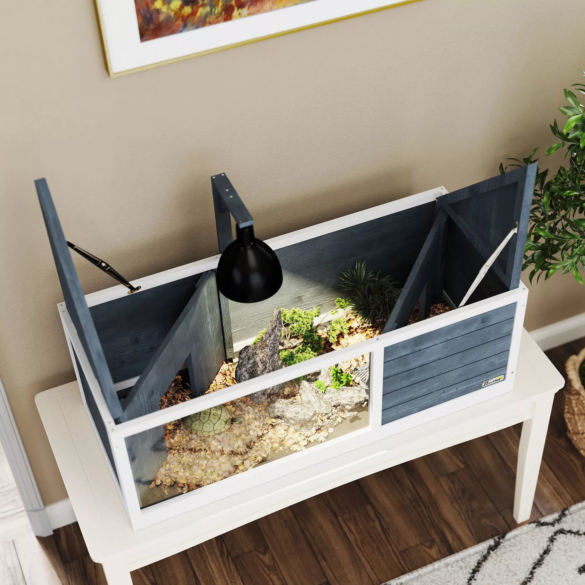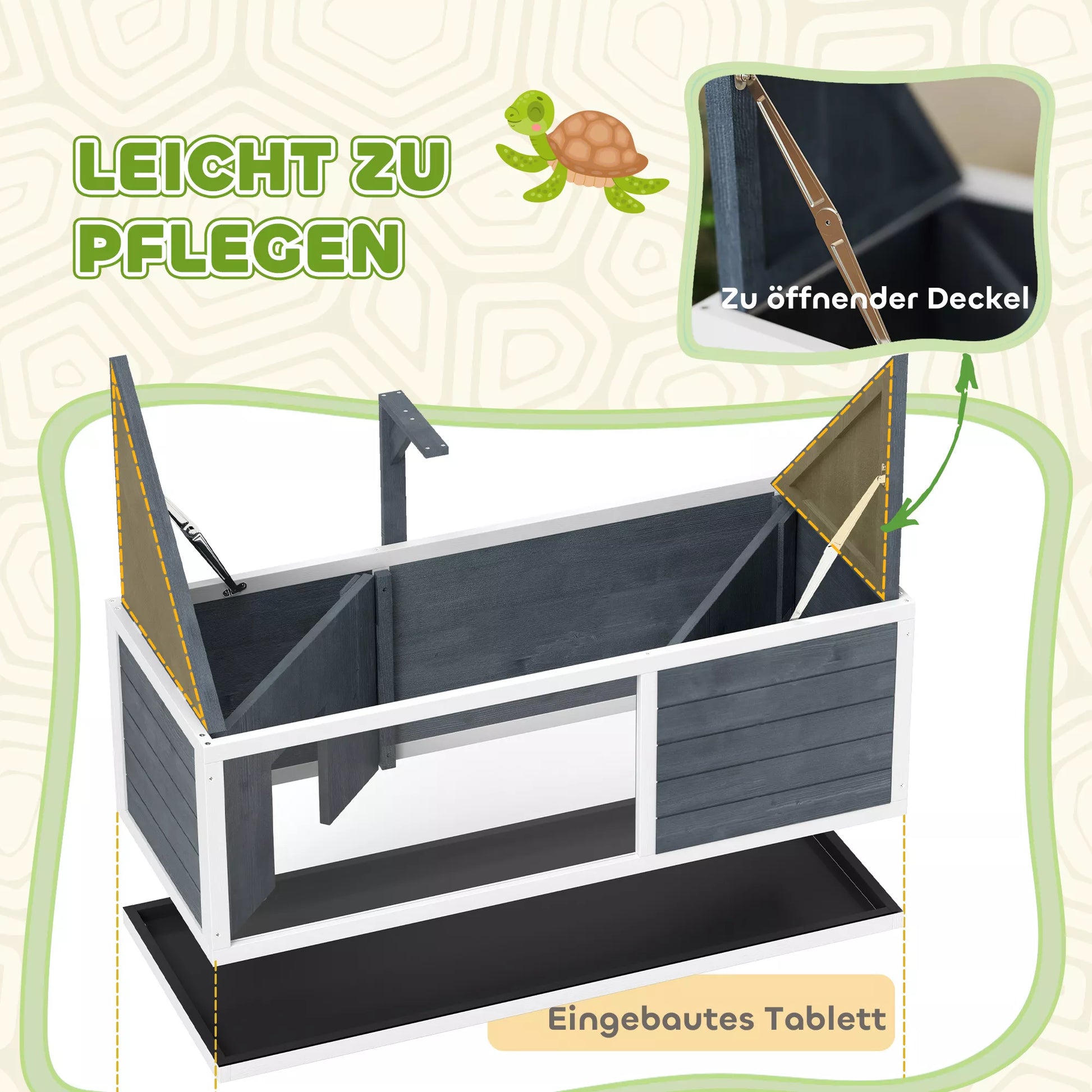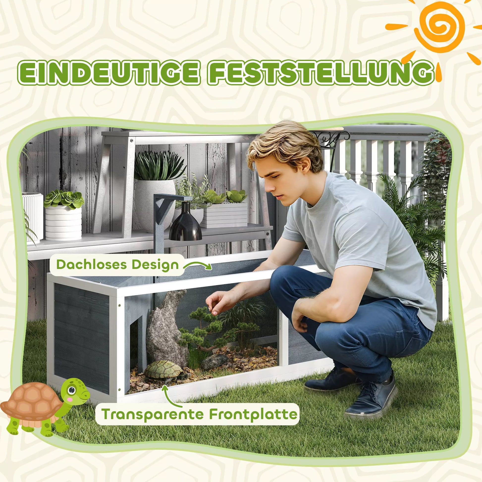 PawHut Bruņurupuču Māja ar Viegli Atveramu Augšu, Lampas Turētāju, Caurspīdīgu Priekšpusi, 120 x 50 x 40 cm, Pelēka
