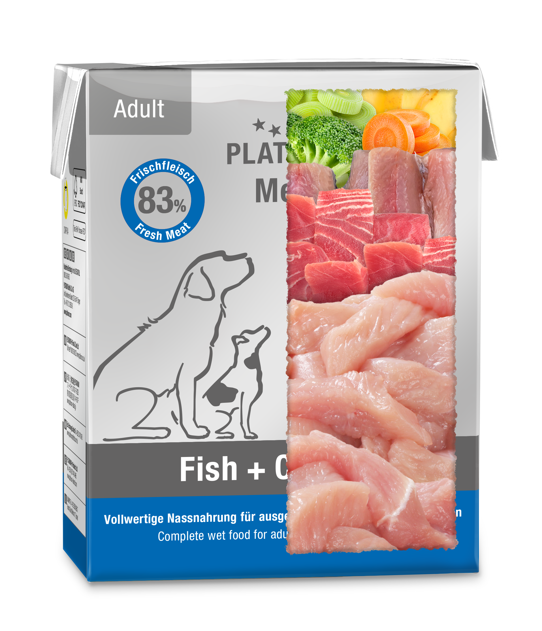 Gatavojot augstākās kvalitātes mājdzīvnieku barību, svarīgas nav tikai sastāvdaļas. Svarīgu lomu spēlē arī īpašs ražošanas process, kas aizsargā uzturvielas! Tāpēc PLATINUM MENU mēs izmantojam inovatīvu iepakojumu: īpašs Tetra Pak iepakojums un 100 g plakana paplāte ļauj pagatavot suņu barību, tvaicējot, maigi gatavojot to savā sulā. Iepakojuma īpašā forma gatavošanas laikā saglabā svarīgas uzturvielas un vitamīnus. Tā rezultātā mūsu barība saglabājas sulīga un garšīga.