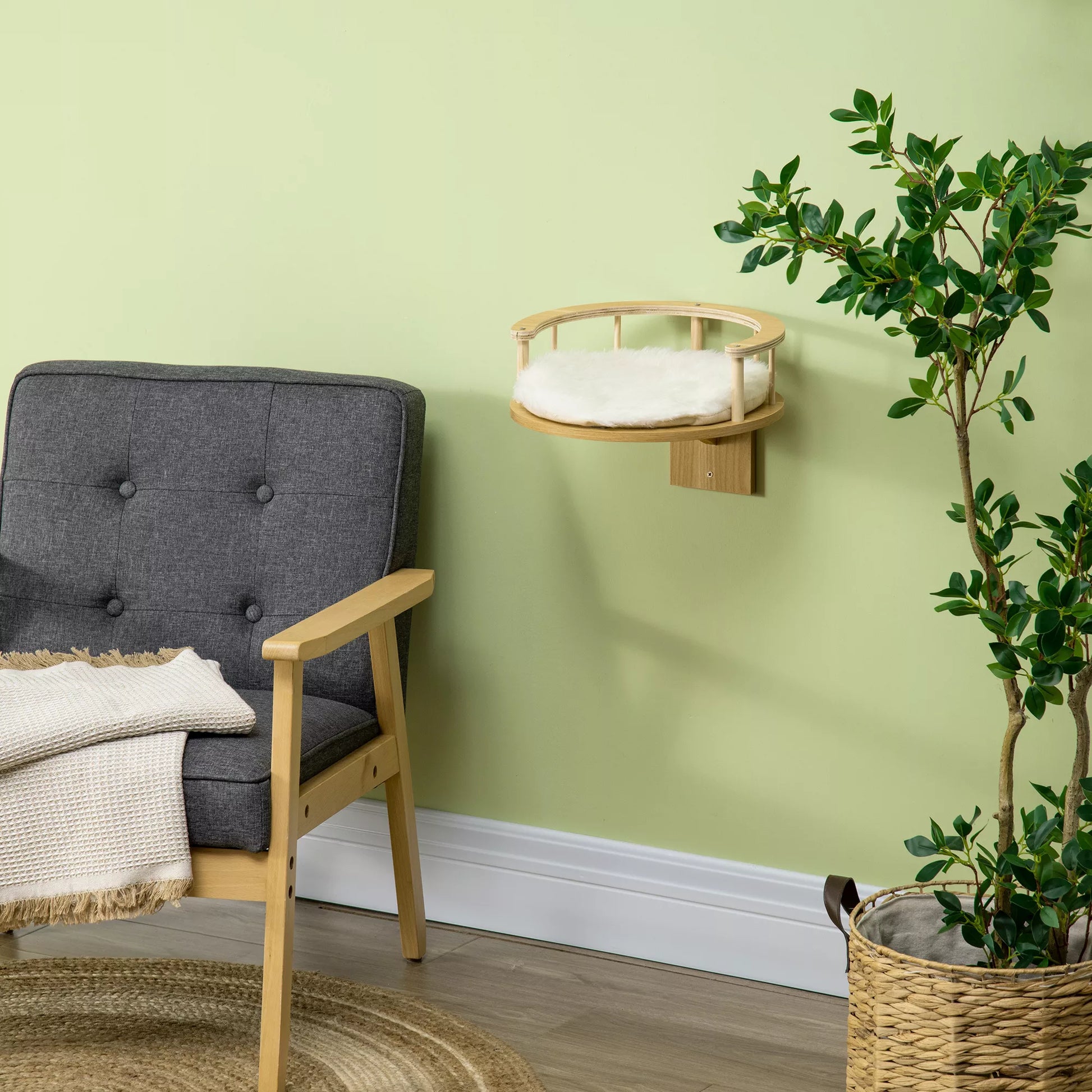 Pie sienas stiprināms kaķu gulta ar aizsargmalu, spilvens gulēšanai, stiprināšanai pie sienas, ozolkoka un krēmbalta, 34 x 34 x 10,5 cm