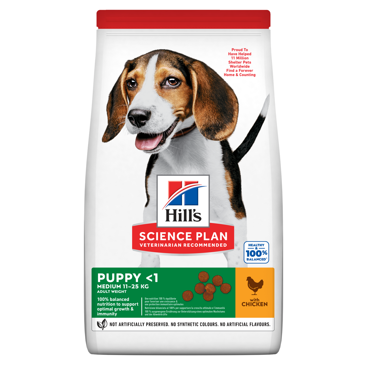 Suņu barība " HILL'S SCIENCE PLAN" Medium Puppy ar vistu ir īpaši izstrādāta, lai apmierinātu kucēnu attīstības vajadzības, nodrošinot vislabāko dzīves sākumu un izaugsmes iespējas.
