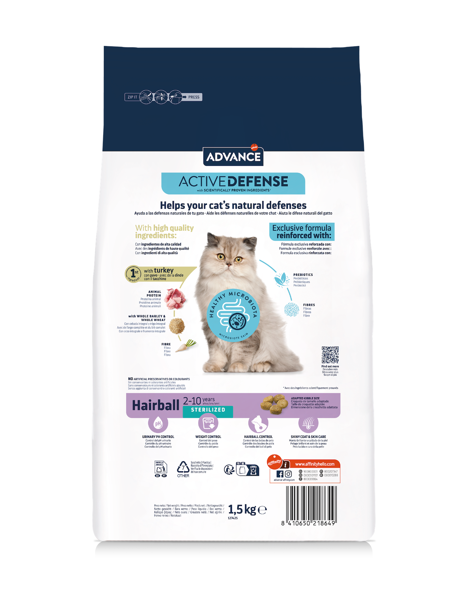 Advance Sterilized Hairball sausā barība sterilizētiem kaķiem pret apmatojuma kamolu veidošanos 1,5 kg