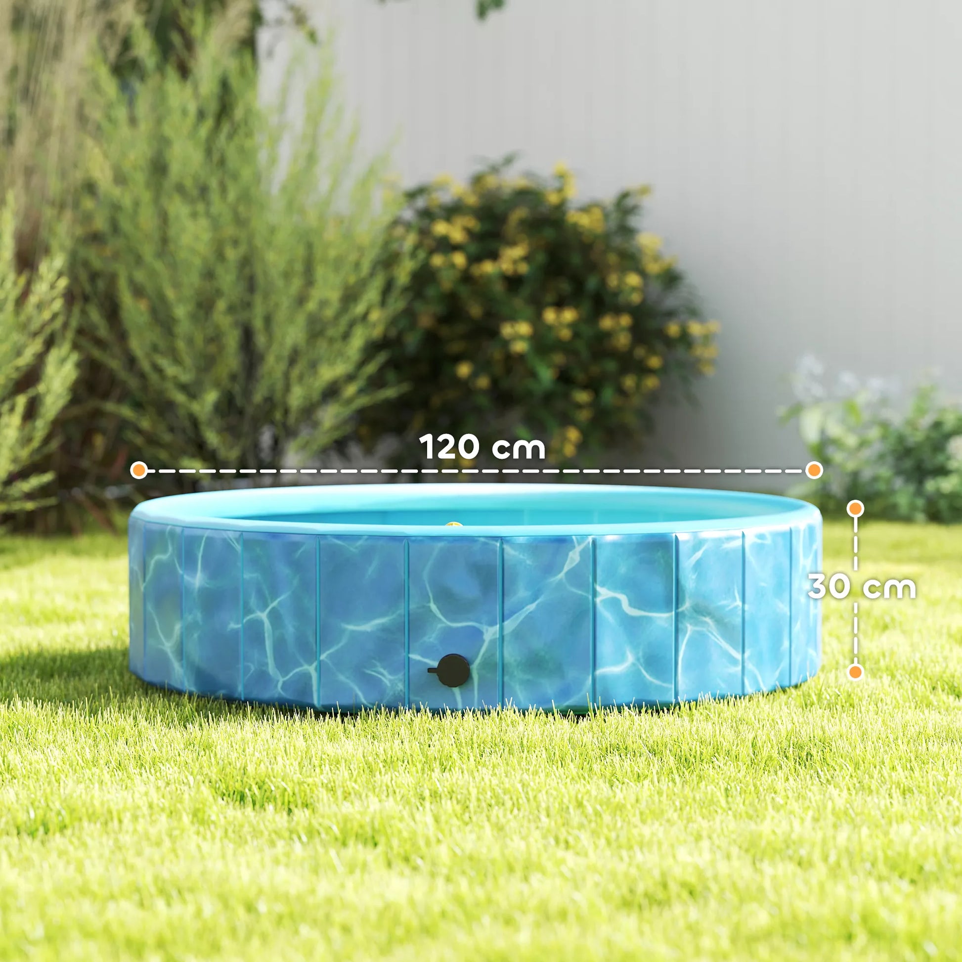 - ✔ Neslīdošs baseina dibens nodrošina mājdzīvnieku drošību spēlējoties