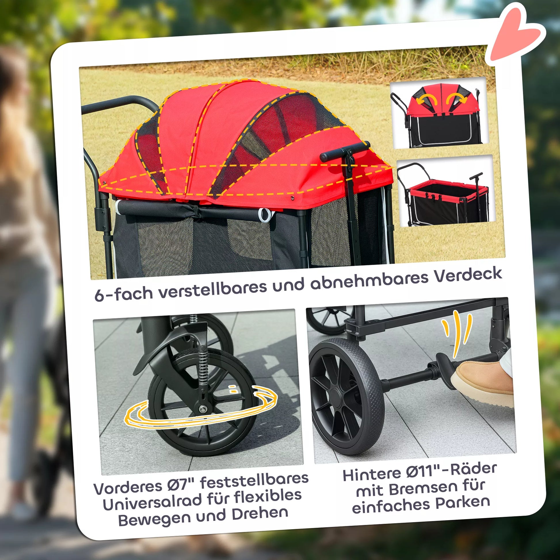 Salokāmi suņu ratiņi kaķiem un suņiem līdz 30 kg, 110 x 65 x 102 cm, sarkani