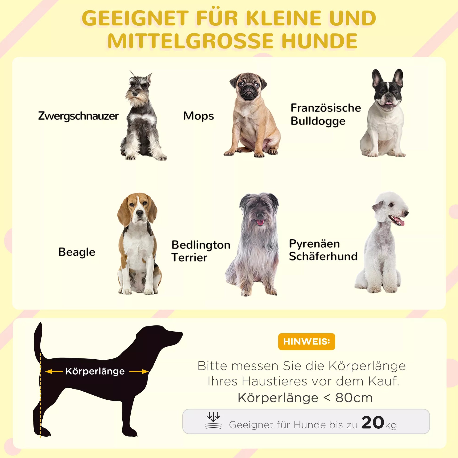 - ✔ Piemērots maziem suņiem līdz 20 kg un 80 cm augumam, piemēram, franču buldogiem un takšiem