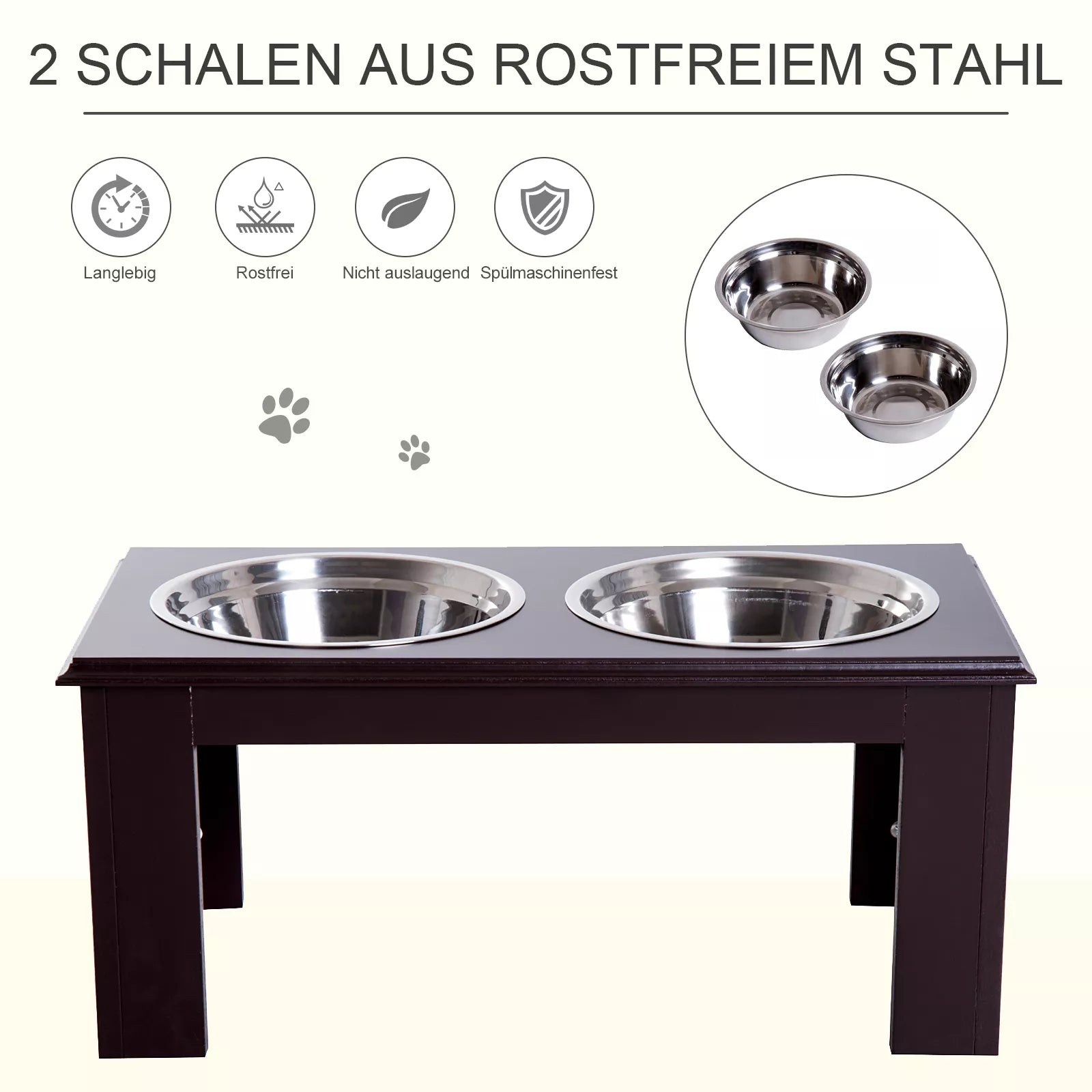 - ✔ Augstas kvalitātes nerūsējošā tērauda bļodas: higiēniskas, nerūsējošas un piemērotas mazgāšanai trauku mazgājamā mašīnā, lai tās būtu viegli tīrāmas