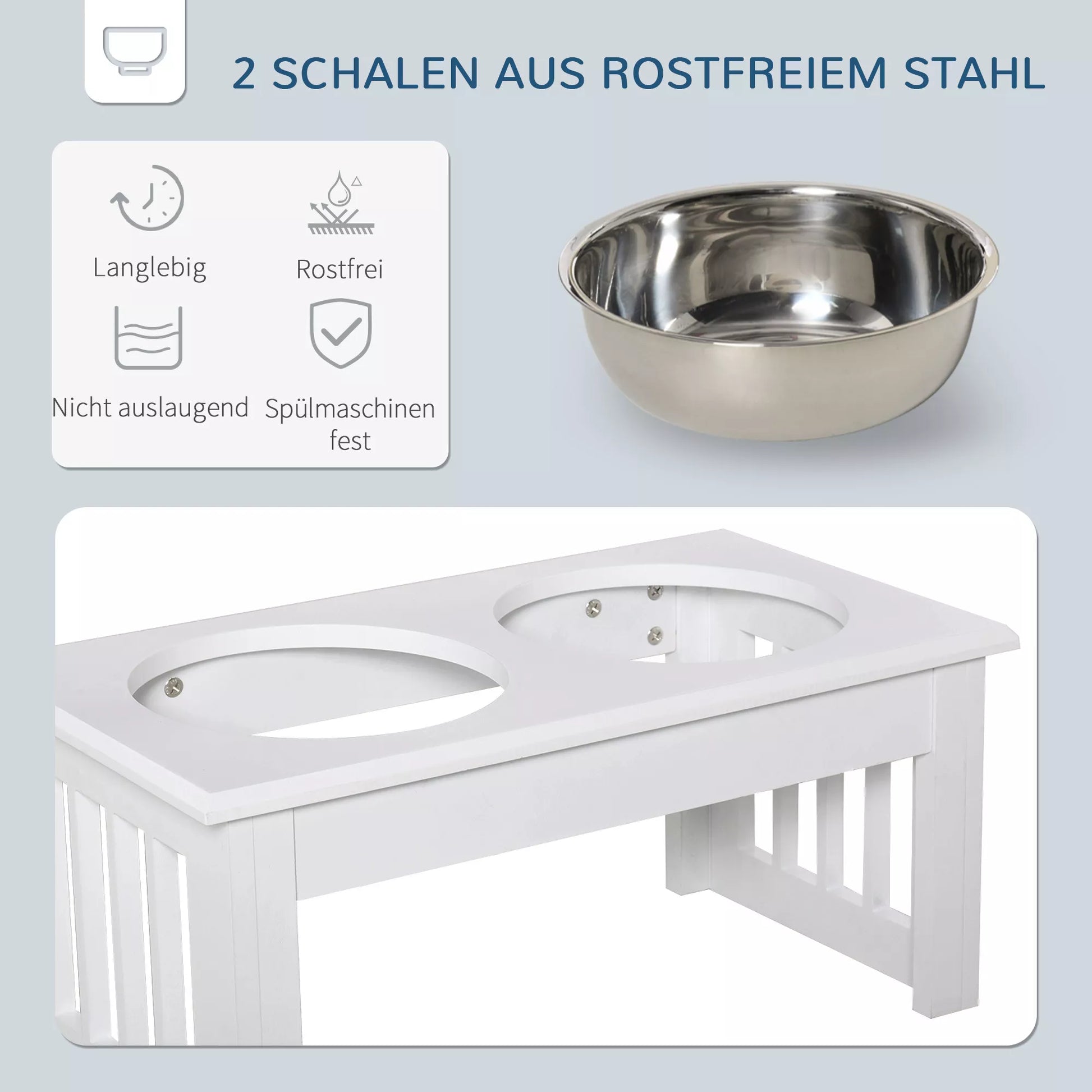 - ✔ Augstas kvalitātes nerūsējošā tērauda bļodas: higiēniskas, izturīgas pret rūsu un drošas mazgāšanai trauku mazgājamā mašīnā, lai tās būtu viegli tīrāmas